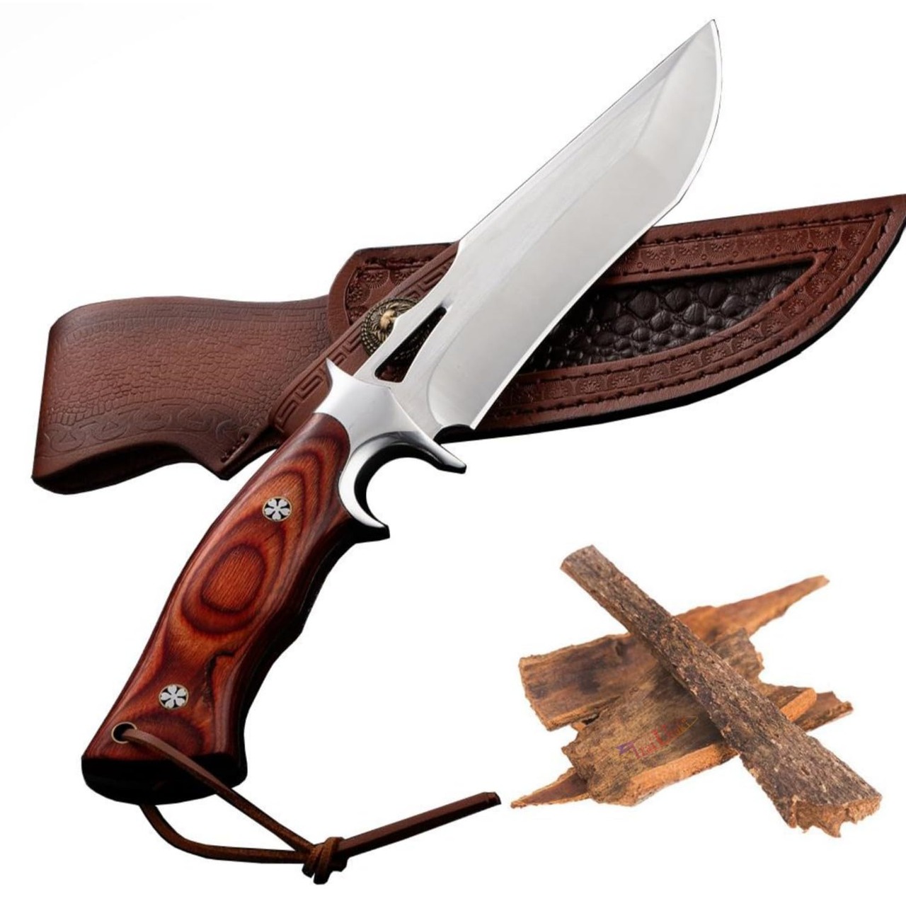 Irai Utakiアウトドアナイフ シースナイフ【破矢】ナイフ 鏡面 高炭素鋼 クリップポイント ダブルヒルト ローズウッドハンドル 薪割り キャンプ 釣り ハイキング 野外登山 革シース付