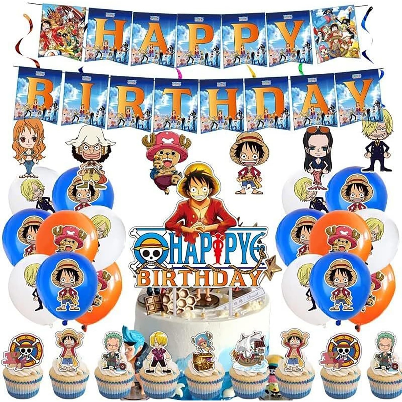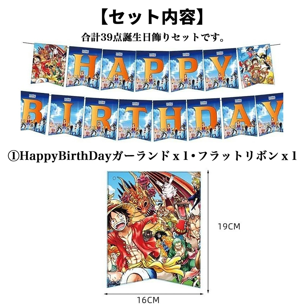 Mosasa 海賊王 誕生日 飾り付け キャラクター風船 ワンピース 誕生日バルーン バースデーバルーン 誕生日飾り 子供バースデーデコレーション HappyBirthday バナー ケーキトッパー バルーン 女の子 男の子 1歳 2歳 誕生日飾り