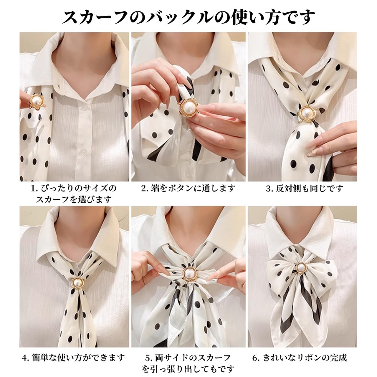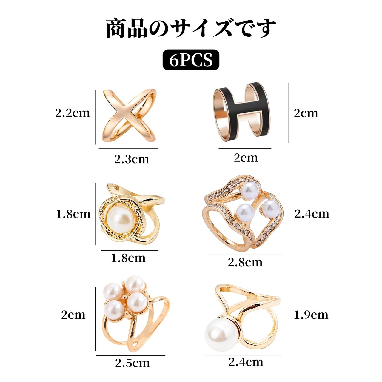 【スカーフリング】スカーフリングは6つのスタイルがあり、スカーフのマッチングのほか、Tシャツやシャツのマッチングにも使えます。Tシャツは多様性を増す。<br>【高品質素材】私たちの真珠のスカーフリングは製作が精良で、高品質で、優れた技術と良質な材料の選択は製品自身に独特な魅力と風格を持たせて、更に真珠の要素を加えて、製品の特性の上で昇華させます。<br>【エレガントアクセサリー】:スカーフリングはとてもエレガントで美しく、スカーフに合わせて使用され、エレガントで高貴な印象を与え、魅力を引き立てます。特に職場のオフィスや開会式や卒業式などのシーンでは、美しいアクセサリーが魅力的です。<br>【いいプレゼント】:優雅なスカーフは母の日、バレンタインデー、誕生日などに最適なプレゼントです。母、女友達、カップル、家族のために用意された美しい衣類アクセサリーであり、ナプキン頭巾として優雅さと美しさを見せることもできます。<br>【製品仕様】製品サイズは内径約2.6~3cm、シンプルでモダンなデザインで、衣類、スカーフ、ショール、Tシャツなどを上品に留めることができます。何か問題があれば、いつでも弊店にご連絡ください、プロのアフターサービスチームはお客様に100%満足のいく解決策を提供します。