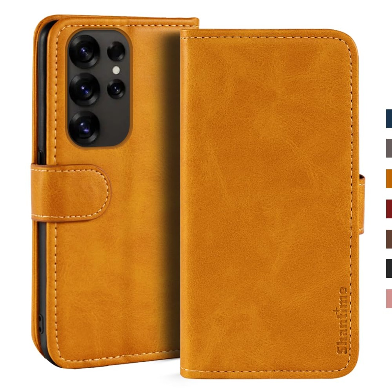 スエード調PUレザー手帳型ケース 対応Samsung Galaxy S25 Ultraとの互換性あり、カード収納・マグネット式フリップカバー&全面保護デザイン (Ligh ブラウン)