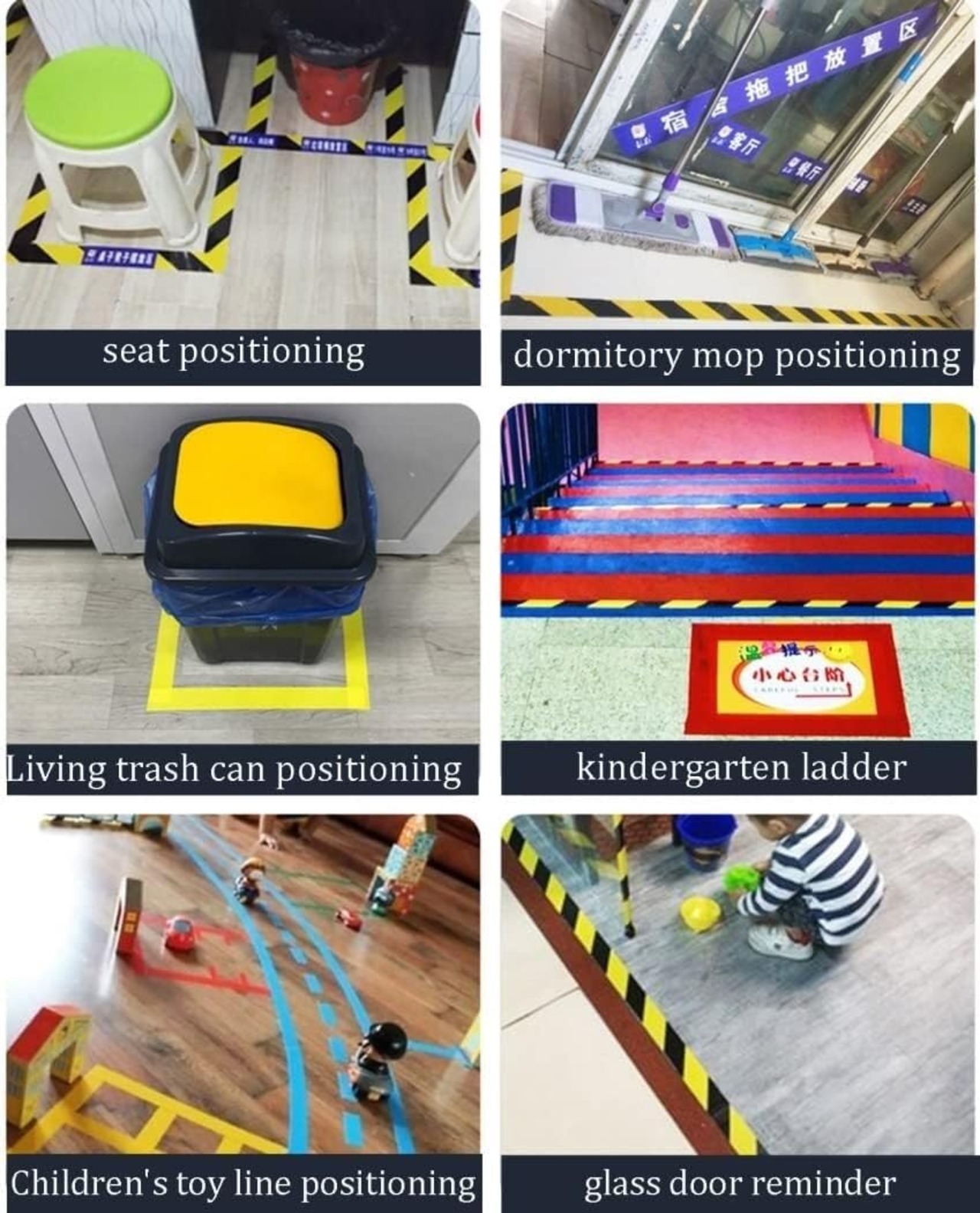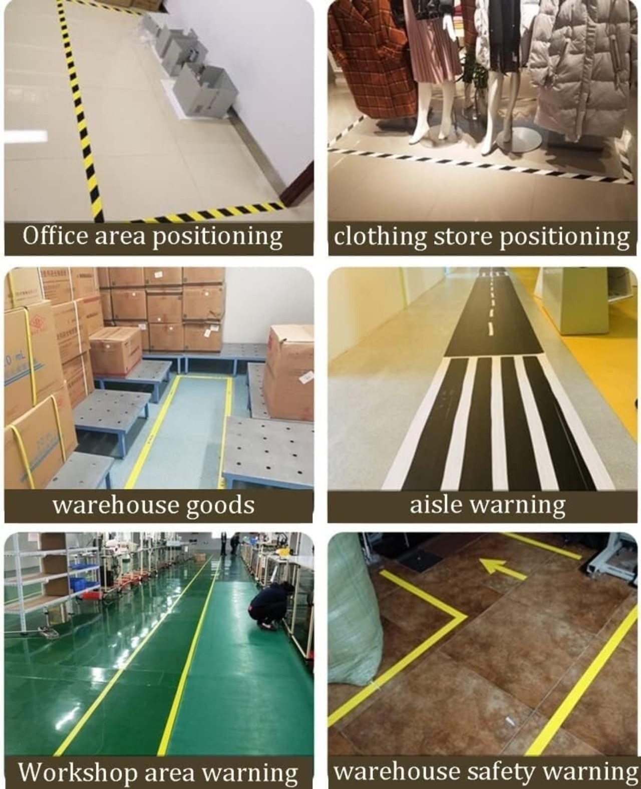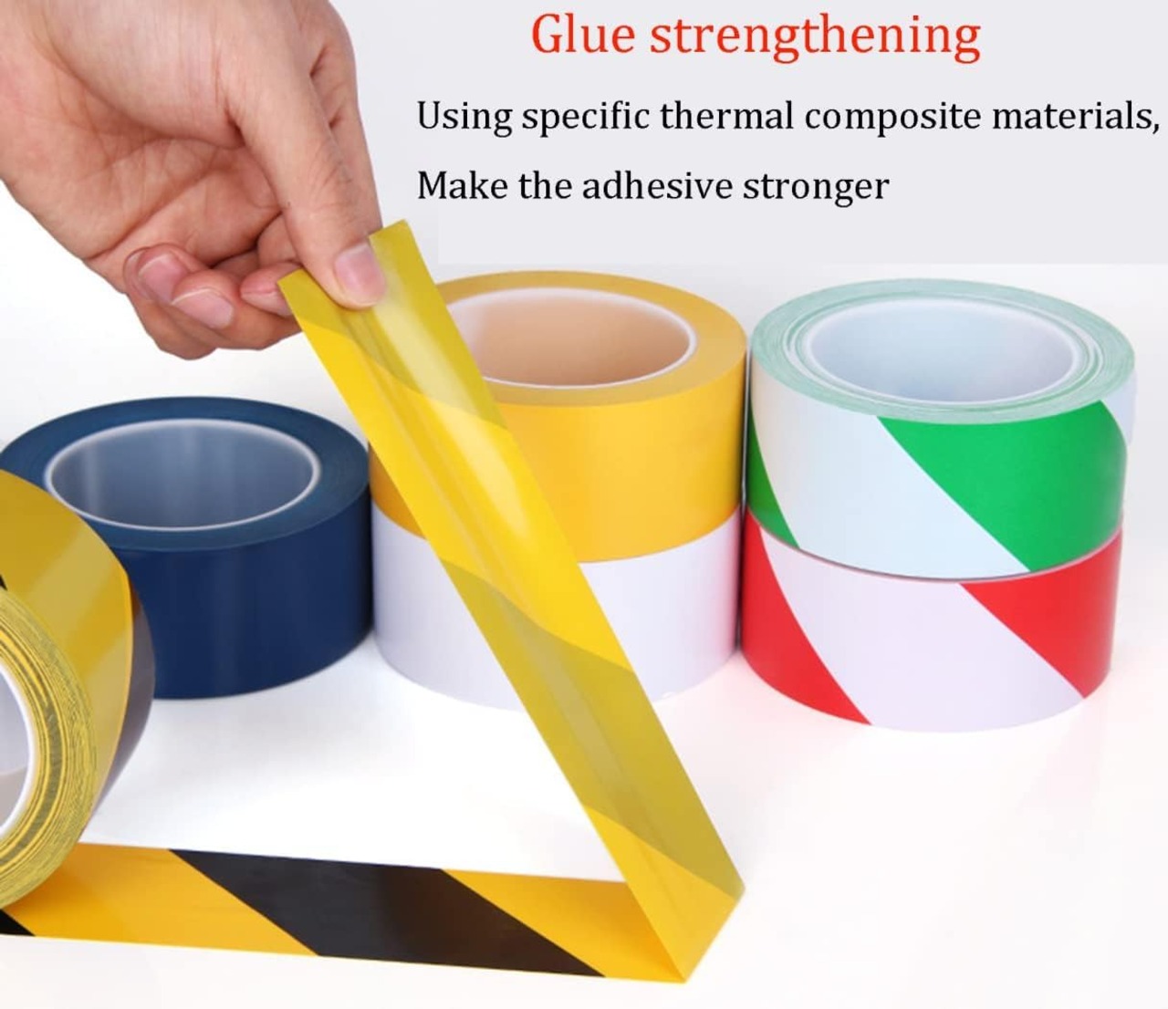 強力なゴム粘着剤: ハザードテープは強力で耐久性のある粘着剤を使用しており、ほとんどの表面に瞬時に接着します。貼り付けた後すぐに歩くことができます。