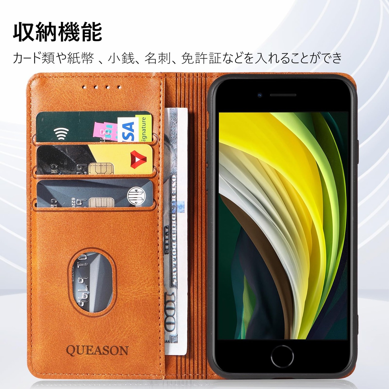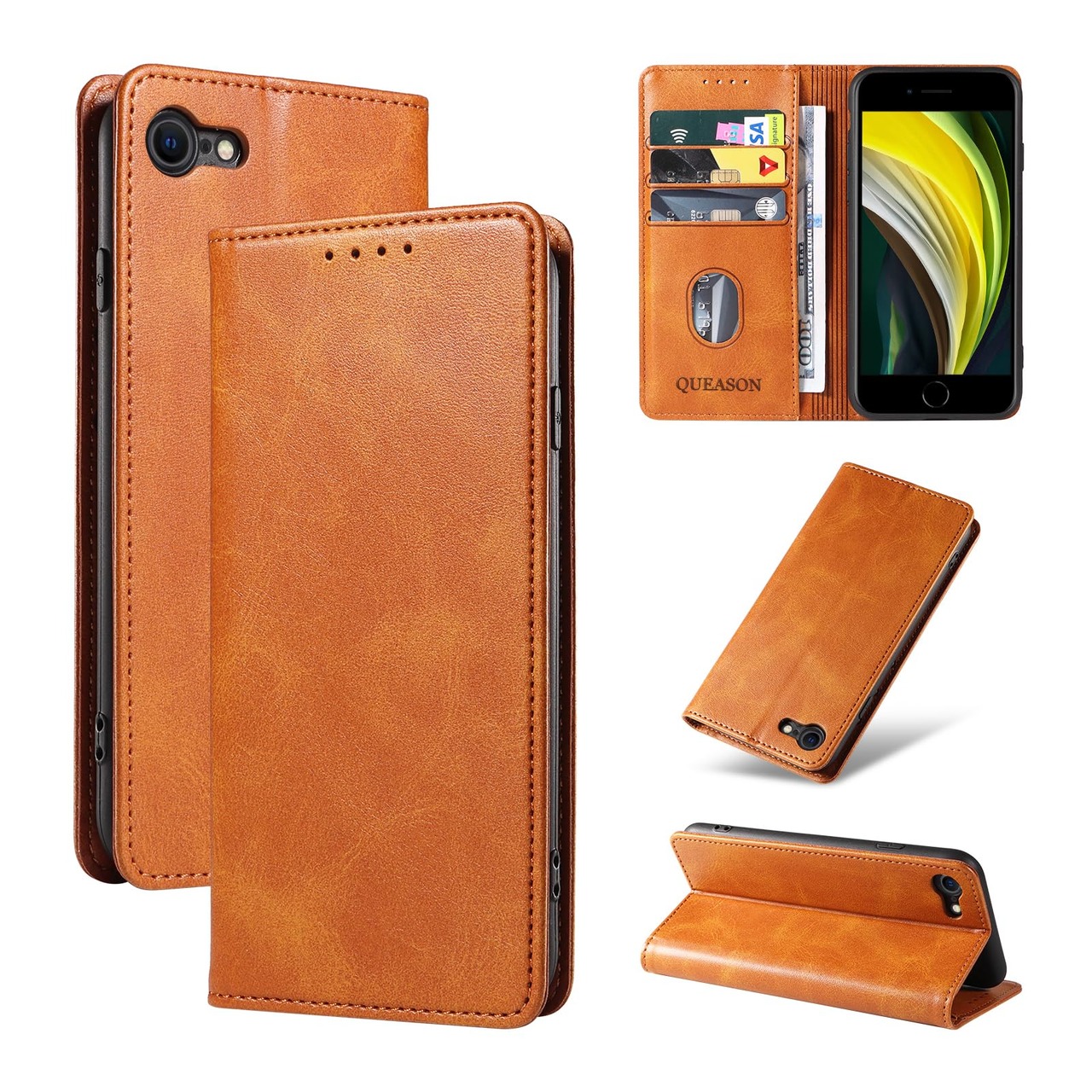 QUEASON【iPhone SE 第2世代/第3世代/iPhone7/iPhone8 通用手帳ケース】iphonese第2世代 ケース 手帳型 携帯ケース iphonese第3世代 ケース 手帳型 スタンド機能 iphone8 ケース 手帳型 iphone7ケース 手帳型 薄型ケース カード収納 落下防止 マグネット式 耐衝撃 全面保護 防塵(カーキ)
