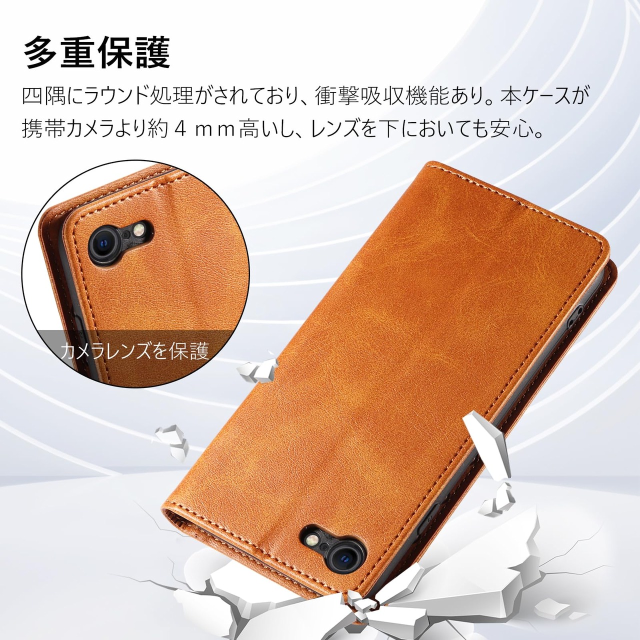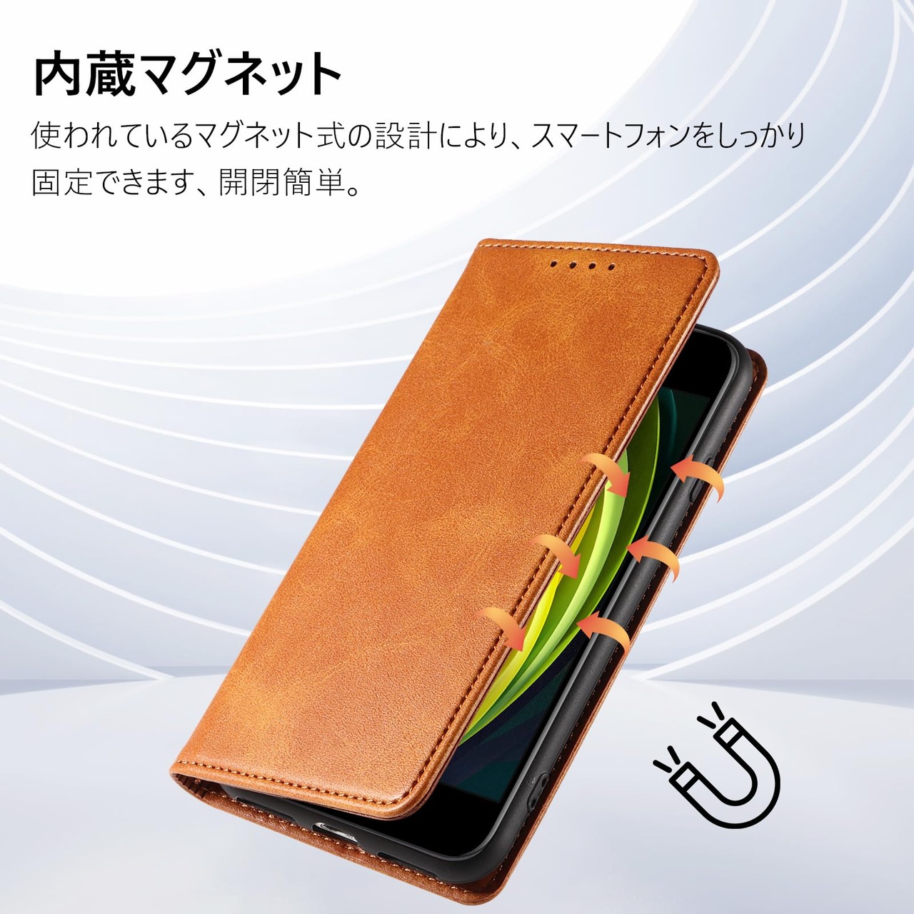【多重保護】アイフォン8ケースの四隅にラウンド処理がされており、衝撃吸収機能あり。内部のプラスチックはTPUソフトケースで、破損することはありません、取り付け・取り外しが簡単で、スマホ本体へのスレ傷が防止できます、衝撃から本体を360°保護します。使われているマグネット式の設計により、スマートフォンをしっかり固定できます、開閉簡単。