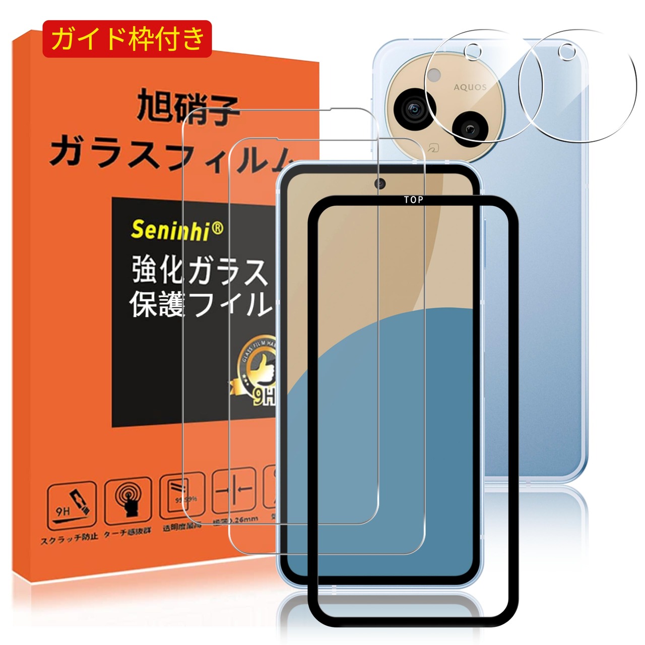 対応 AQUOS Sense9 ガラスフィルム カメラフィルム ガイド枠付き 指紋防止 SH-53E SHG14 SH-M29 強化ガラス アクオスセンス9 硬度9H 国産旭硝子AGC素材 気泡ゼロ 飛散防止 高感度 衝撃吸収 指紋防止 ラウンドエッジ加工 【2枚液晶保護+2枚レンズ保護+ガイド枠】 SXWSEN9221