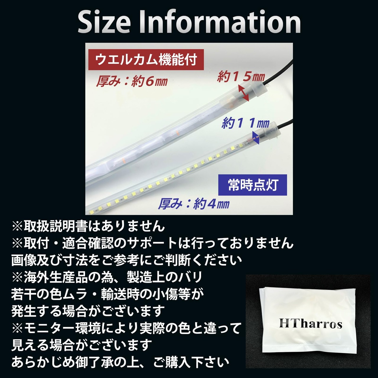 【簡単取り付け】厚み:ウエルカム機能付き約6mm、常時点灯約4mmと薄型な為、ボンネットやディライトとして簡単に取り付け可能です。DC12Vの汎用性を持ち、ほとんどの車種に対応しています。取り付けに特別な工具は不要で、手軽にカスタマイズを楽しめます。