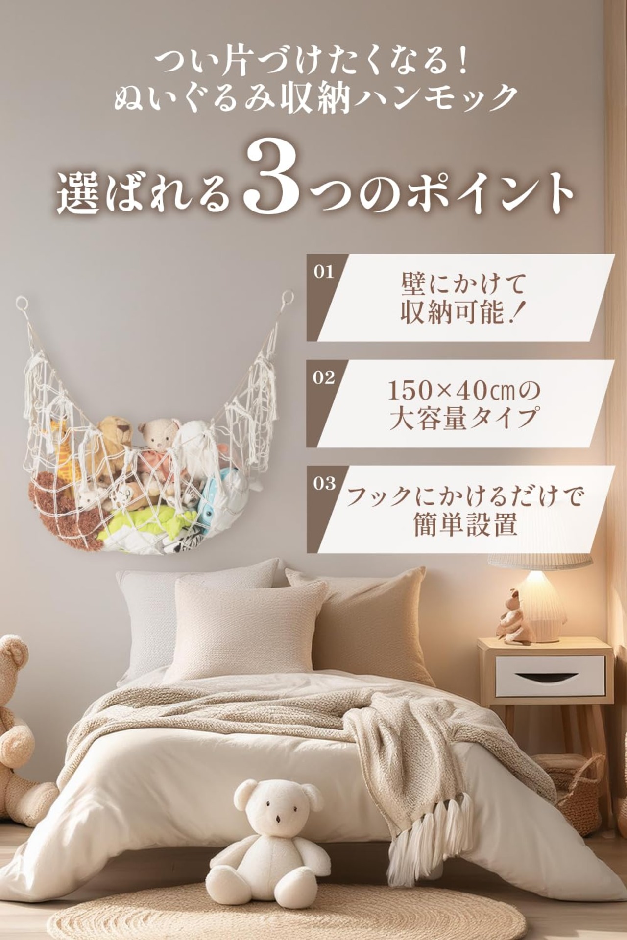 ぬいぐるみ収納 ハンモックタイプ【収納コーディネーター監修】空中収納でお部屋スッキリ