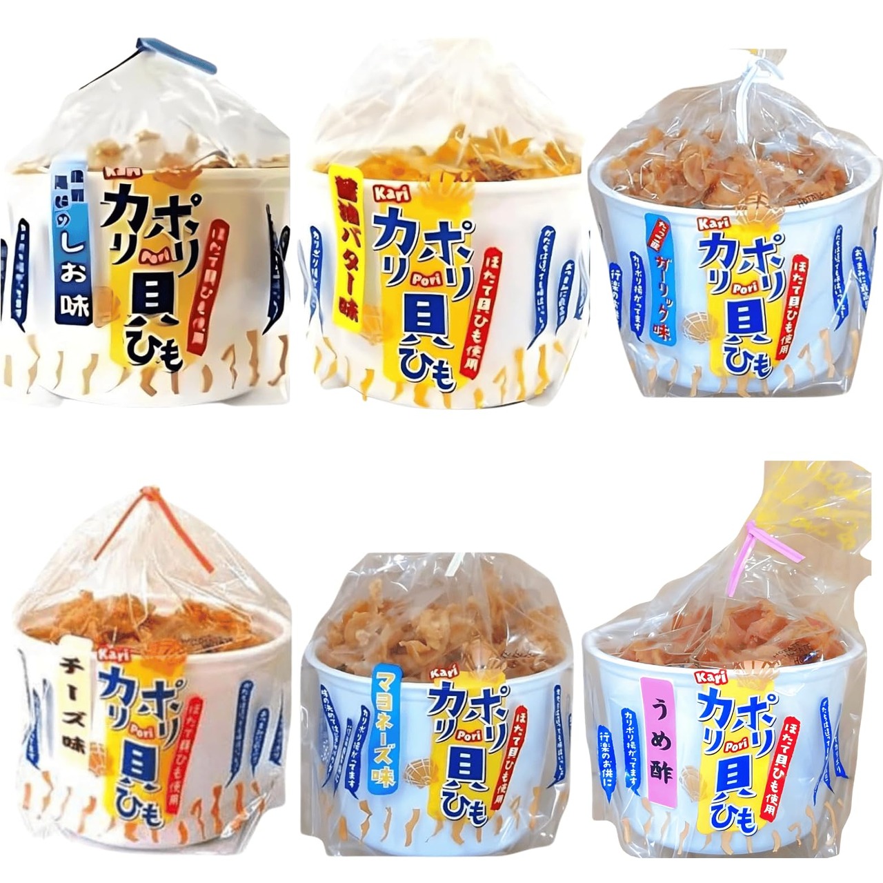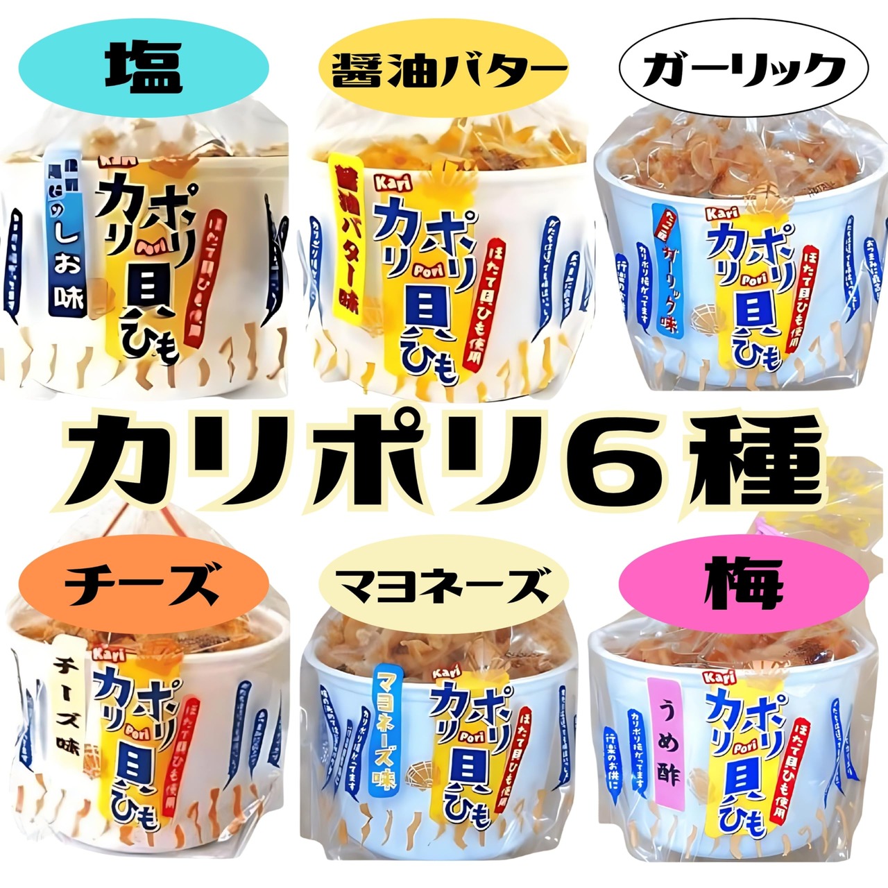 カリポリ 貝ひも ホタテ 6種食べ比べ 醤油バター ガーリック 塩 マヨ チーズ 梅酢 お菓子 かりぽり karipori おつまみ 帆立 40g 各1袋 (カリポリ6種)