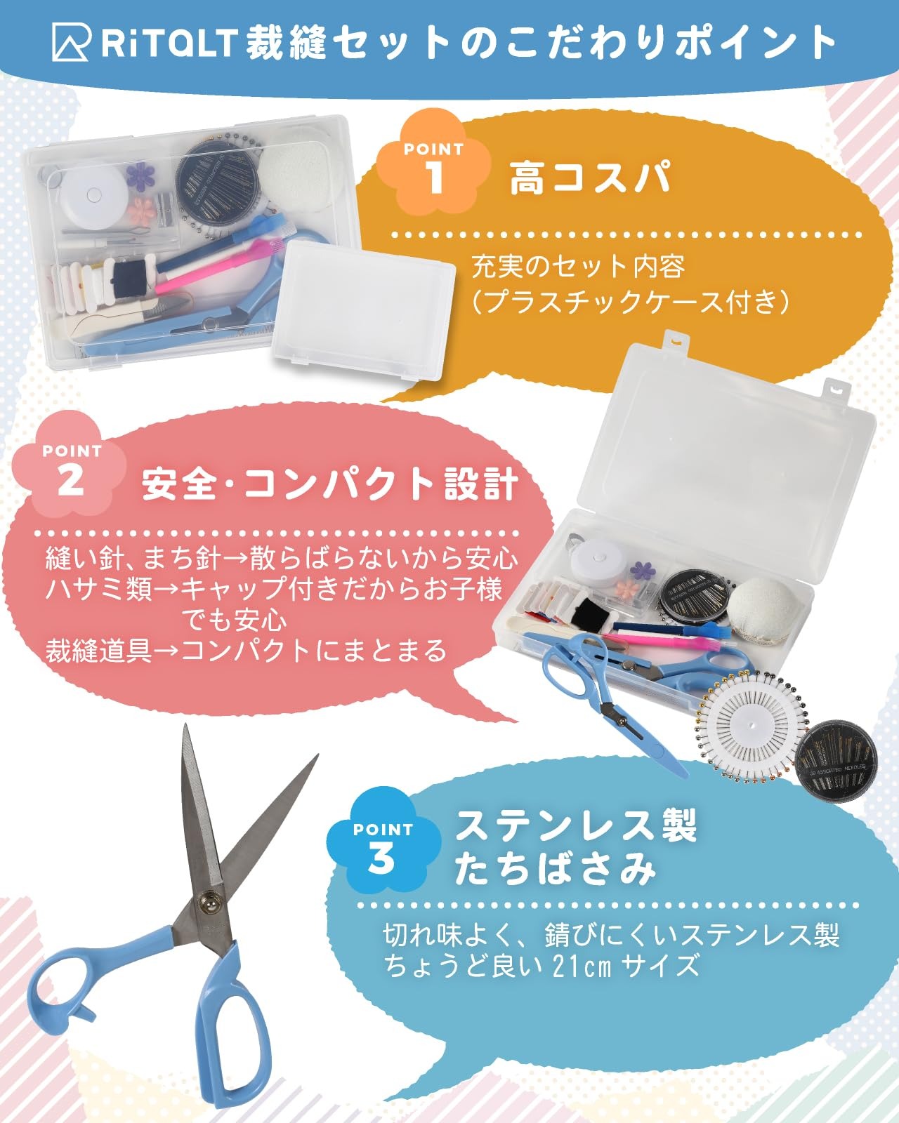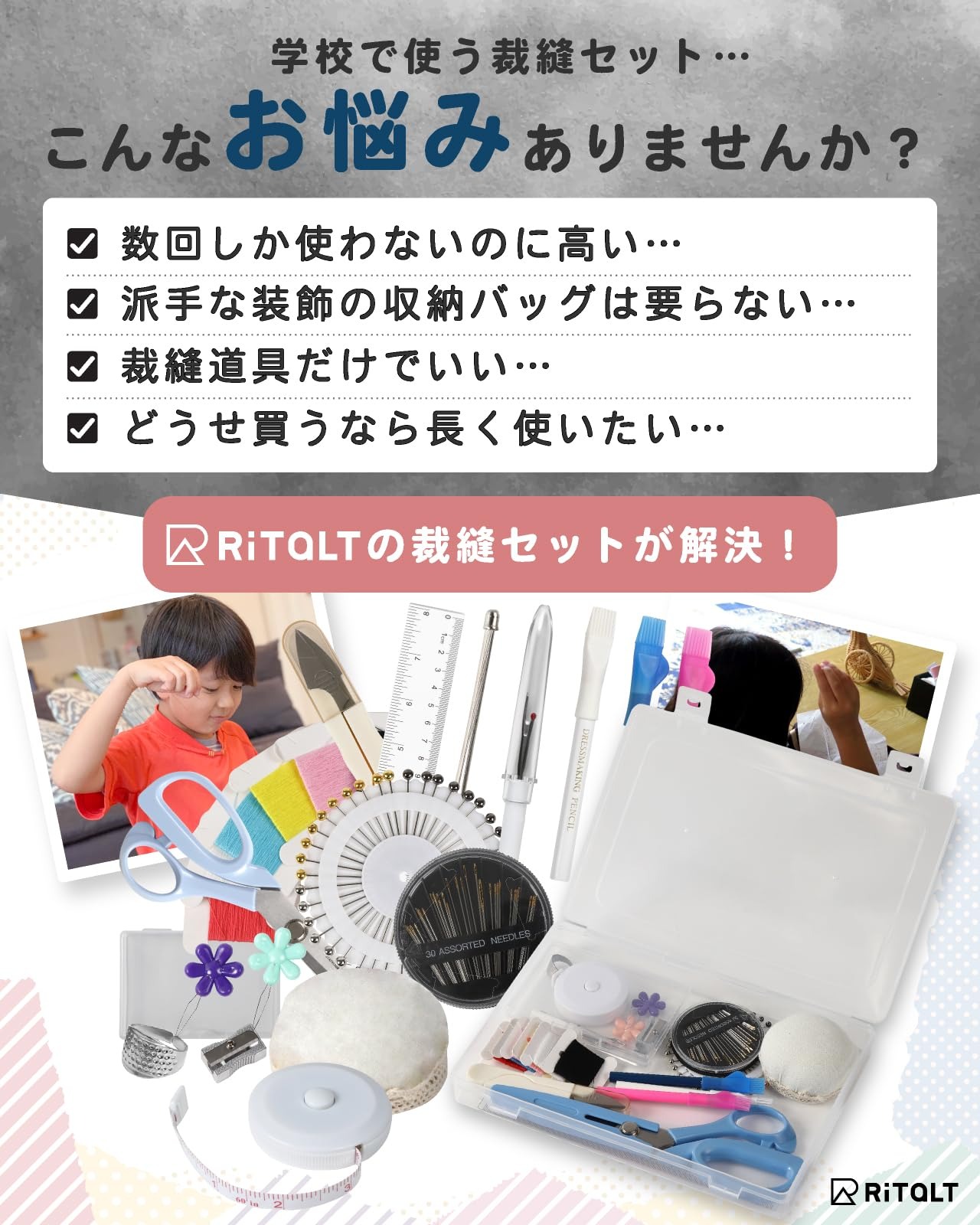 RiTaLT 裁縫セット ソーイングセット 大人 小学生 女の子 男の子 小学校 裁縫道具 中身のみ (クリアケース)