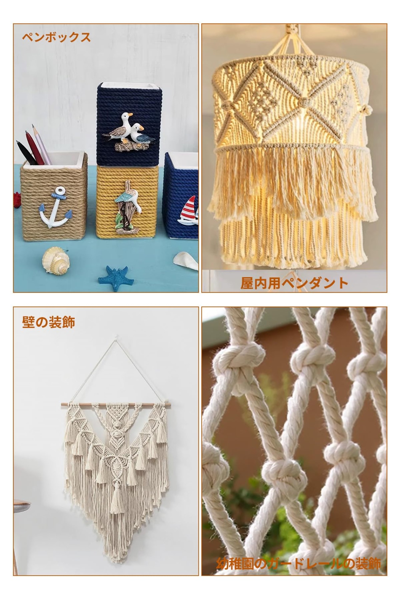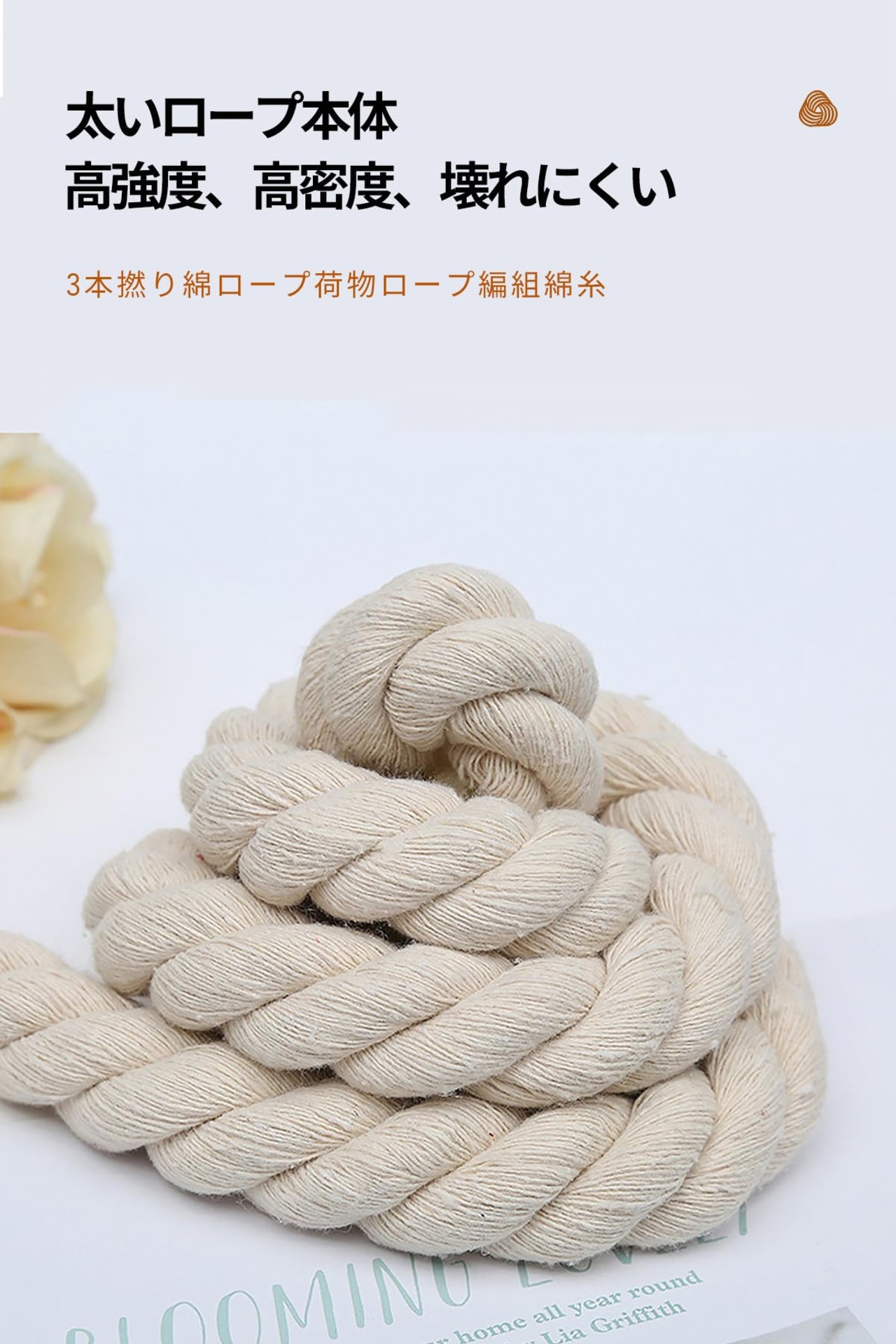 【優れた素材】この製品は、耐熱性と耐摩擦性の天然繊維で作られた3本ストランドコットンロープで構成されており、自然で環境に優しいです。 「スリーストランド」は3本のストランドをより合わせたスタンダードなロープの結束方法で、強度に優れています。そしてある程度の靭性があり、天候や温度の影響で変形することがありません。天然繊維なので、水や土の中で腐食し土に還りますが、環境を汚染しません。