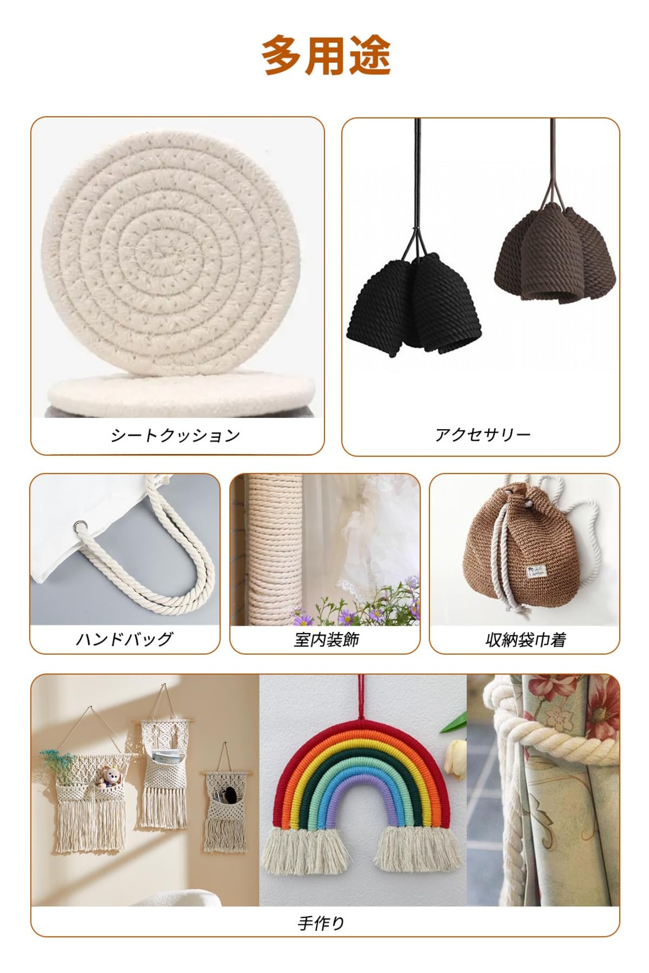 XXIAOTIAN(ゼクシオティアン) カラー綿ロープ 直径20mm/10mm 綿ロープ3ツ打 柔らか 手芸用 天然 手作り インテリア 飾り