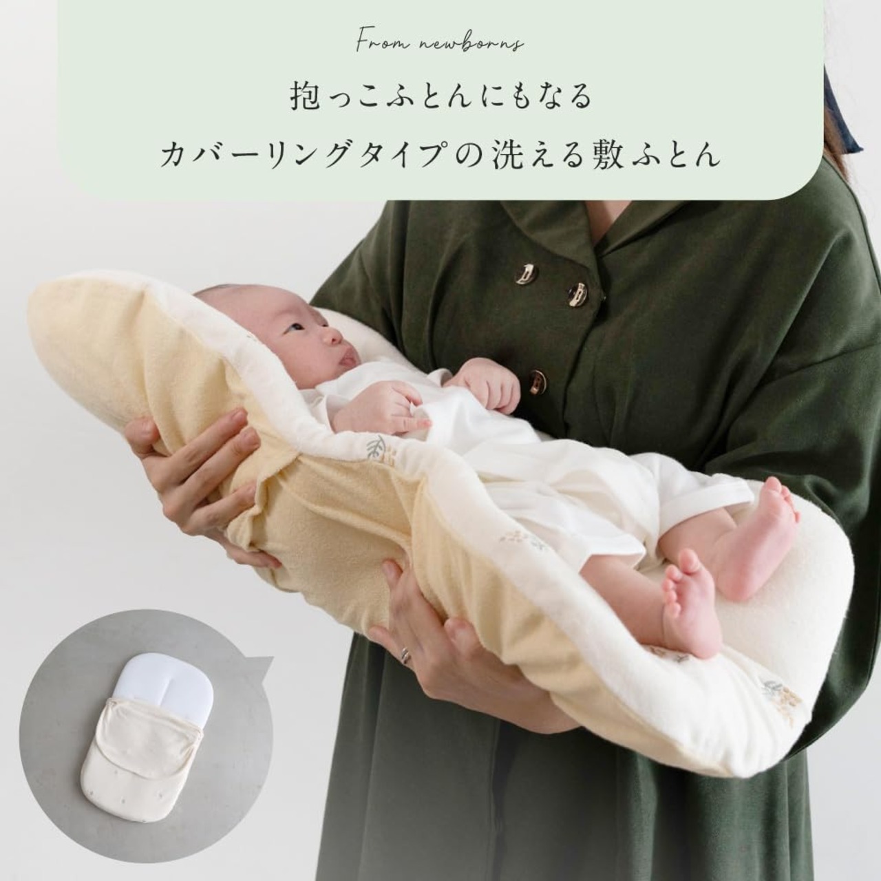 抱っこ布団は『ふかふかのやわらかわたタイプ』『通気性抜群のメッシュタイプ』選べる2タイプ