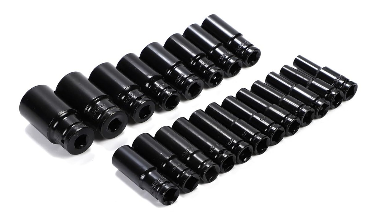 1/2”(12.7mm)ディープソケット、ラチェット、エアーインパクトなどにも対応。 もちろん手動のソケットレンチでも使えます。 普通のショートソケットでは届かないポイントで大活躍するのがこのディープソケットです。