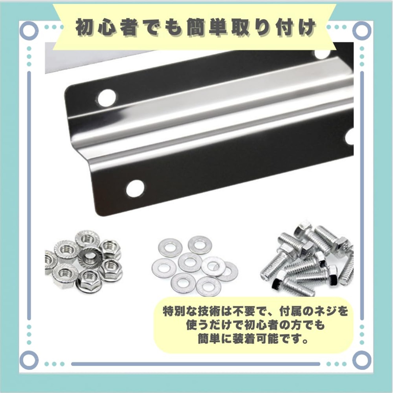 【高品質素材で耐久性抜群】サビに強いステンレススチールを採用。泥はねなどによる汚れが付いても、拭くだけで簡単にお手入れが可能です。【車体の汚れを防ぐ】フェンダーを延長することで泥はねを防ぐだけでなく、車体の汚れも防ぐことができます。シンプルなデザインなのでどんなマッドガードにもマッチします。【取り付け簡単】特別な技術は不要で、付属のネジを使うだけで初心者の方でも簡単に装着可能です。【幅広い適合車種】ハイゼット、ピクシス、サンバートラックなど、幅広い車種に対応可能です。【安心の返品・返金保証】万が一商品にご満足いただけない場合、商品到着から30日間返品・返金対応させて頂きます。 また、お困りごとがございましたら、メールサポートにて24時間日本人専任スタッフが対応致しますので、ご安心してお買い求めください。