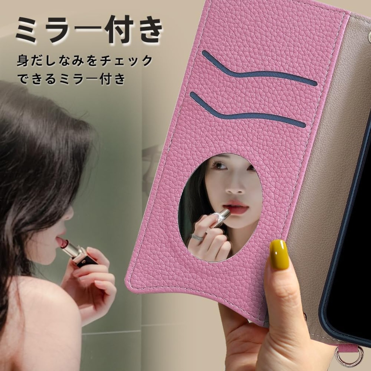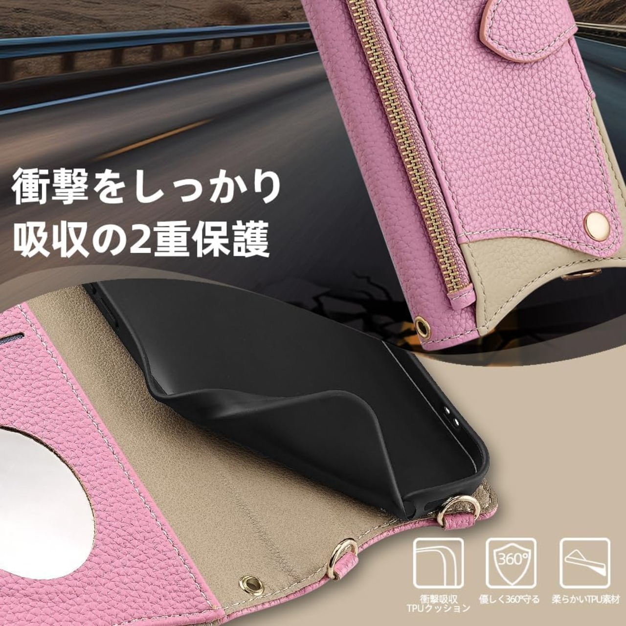 For Google Pixel 6A ケース 手帳型 ショルダー For グーグル ピクセル6A カバー 財布型 肩掛け 横+縦 2掛け方 斜めがけ 化粧鏡付き おしゃれ ジッパー小銭入れ カード収納 横置き ロングストラップ 耐汚れ PUレザー 防指紋 高耐久性 女性用 贈り物 COCOCLOUD ピンク