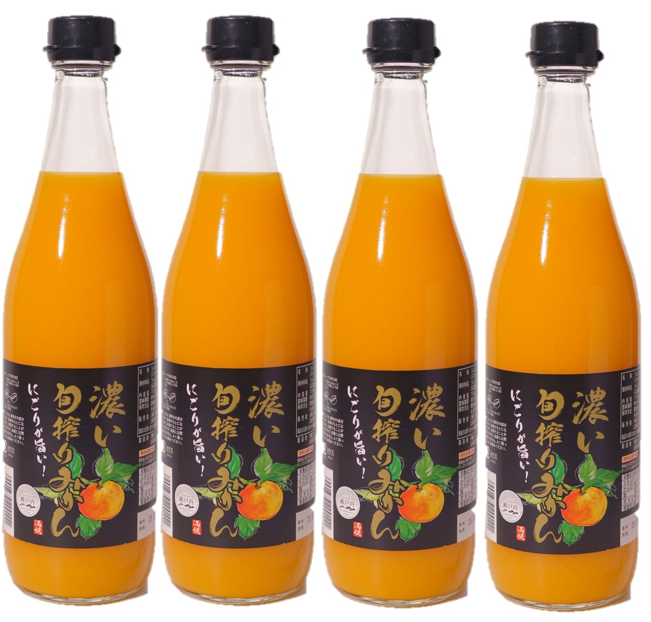 【4本セット】果香園 濃い旬搾りみかんジュース 700ml 100%ストレート にごり 広島県産・愛媛県産