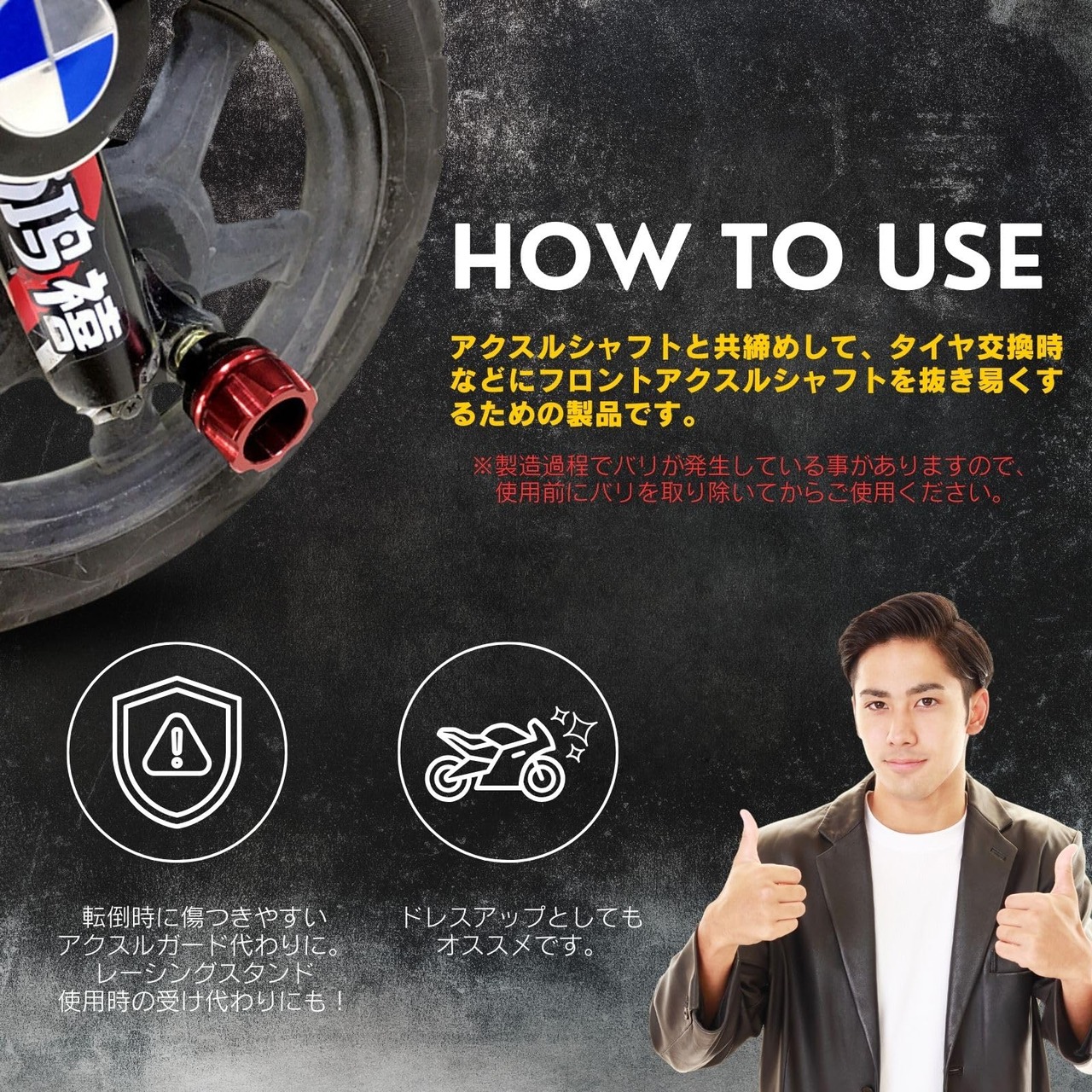 アクスルシャフトの保護機能を備え、タイヤ交換を容易にし、レーシングスタンドの受け代わりとしての使用も可能です。ドレスアップ用途にも適しており、バイクのスタイリングに一役買います。