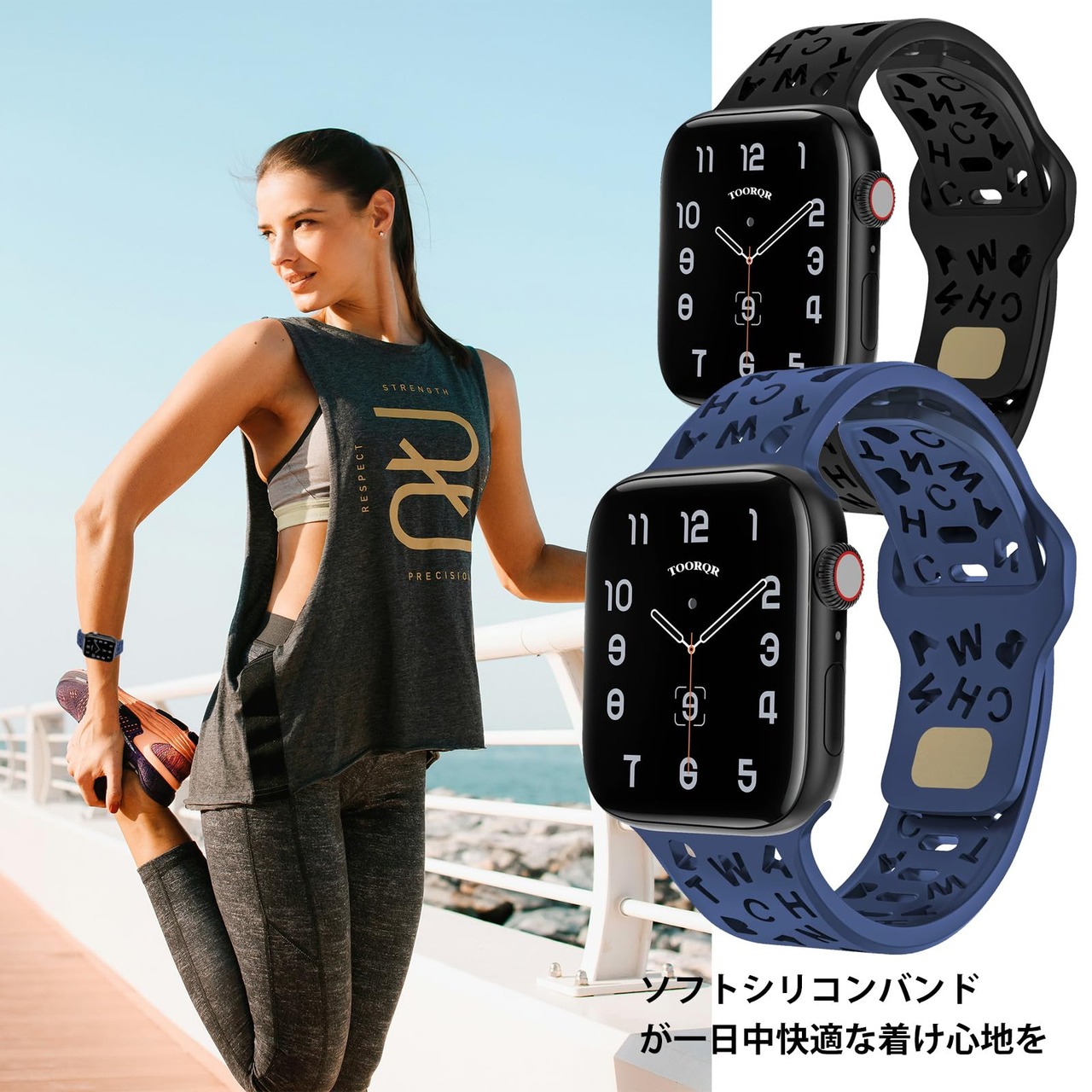 TOORQR コンパチブル iWatch バンド アップルウォッチ バンド 英字スタイルの中空デザインシリコン製のApple Watch ベルト 49mm 46mm 45mm 44mm 42mm 41mm 40mm 38mm 通気 シリコン交換ベルト 防汗 防水 Ultra2/Ultra 10 9 8 7 6 5 4 3 2 1 SE に対応 (49/46/45/44/42mm,ブラック)