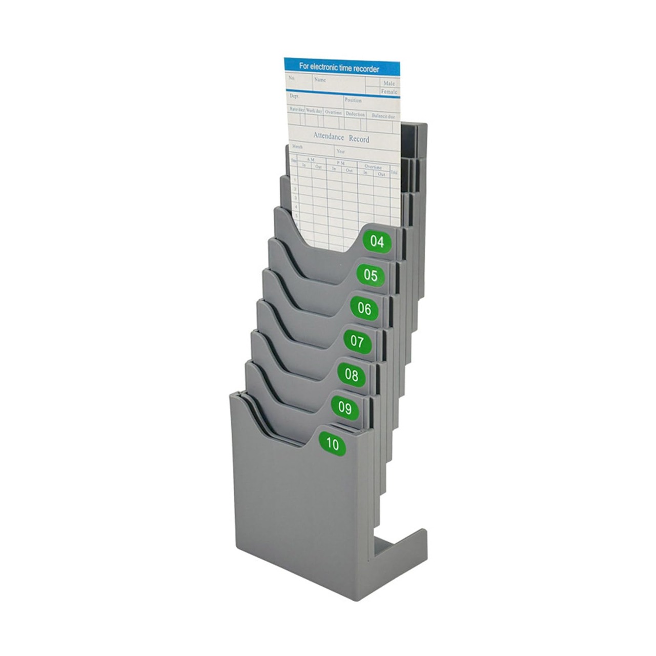 拡張可能なタイムカードホルダーと一緒にワークスペースを整理し、効率的に保ちます。これは、コンパクトでアクセス可能な方法で最大10枚のタイムカードをきちんと保管および管理するように設計されています。