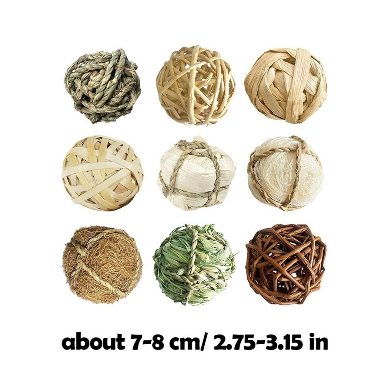 【サイズ】のボール玩具のサイズは7-8cm/2.75-3.15インチです。健康な素材を使用した手作り小動物おもちゃのため、サイズ・形状などは多少の誤差があります。