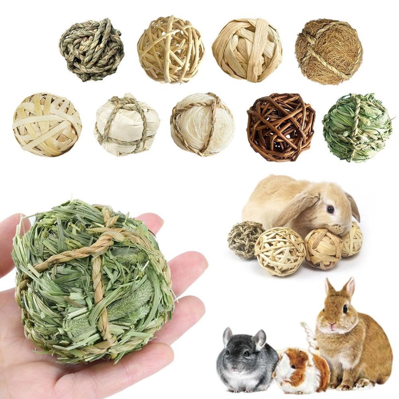 うさぎ ハムスター おもちゃ 草編みのボール 1個/9個入り ブランチラタンボール かじり木 うさぎ おやつ 健康な素材 ラビット ナチュラル噛む玩具 モルモットリス 歯磨き おもちゃ 歯ぎしり ストレス 運動不足解消 小動物用