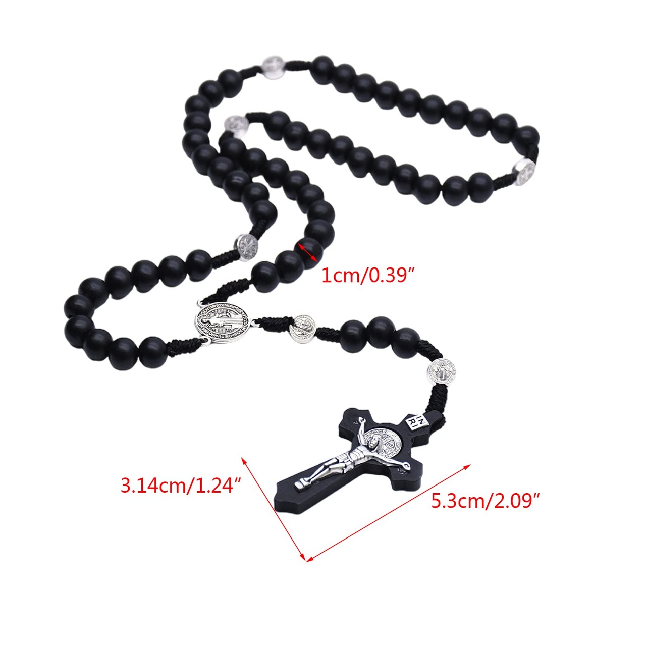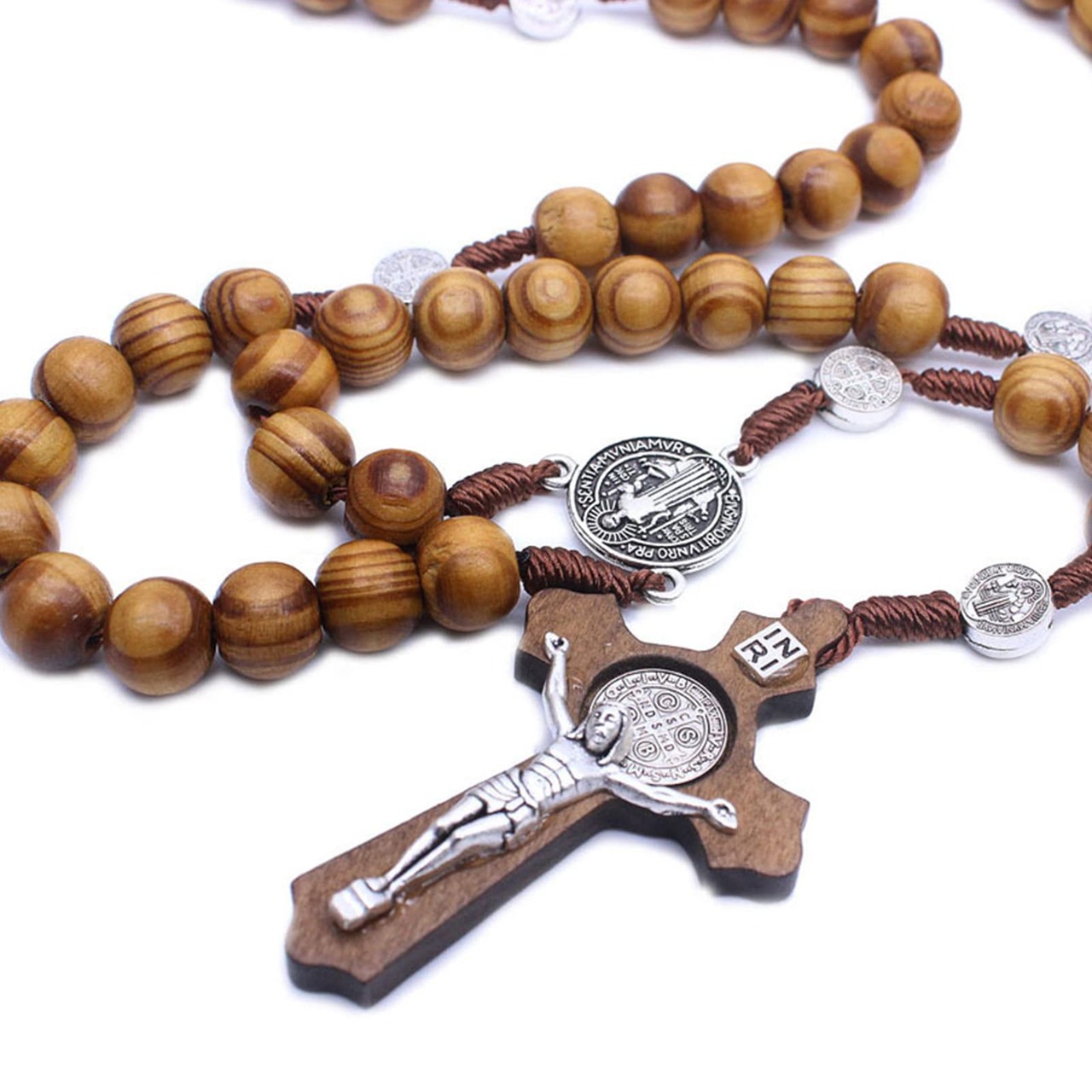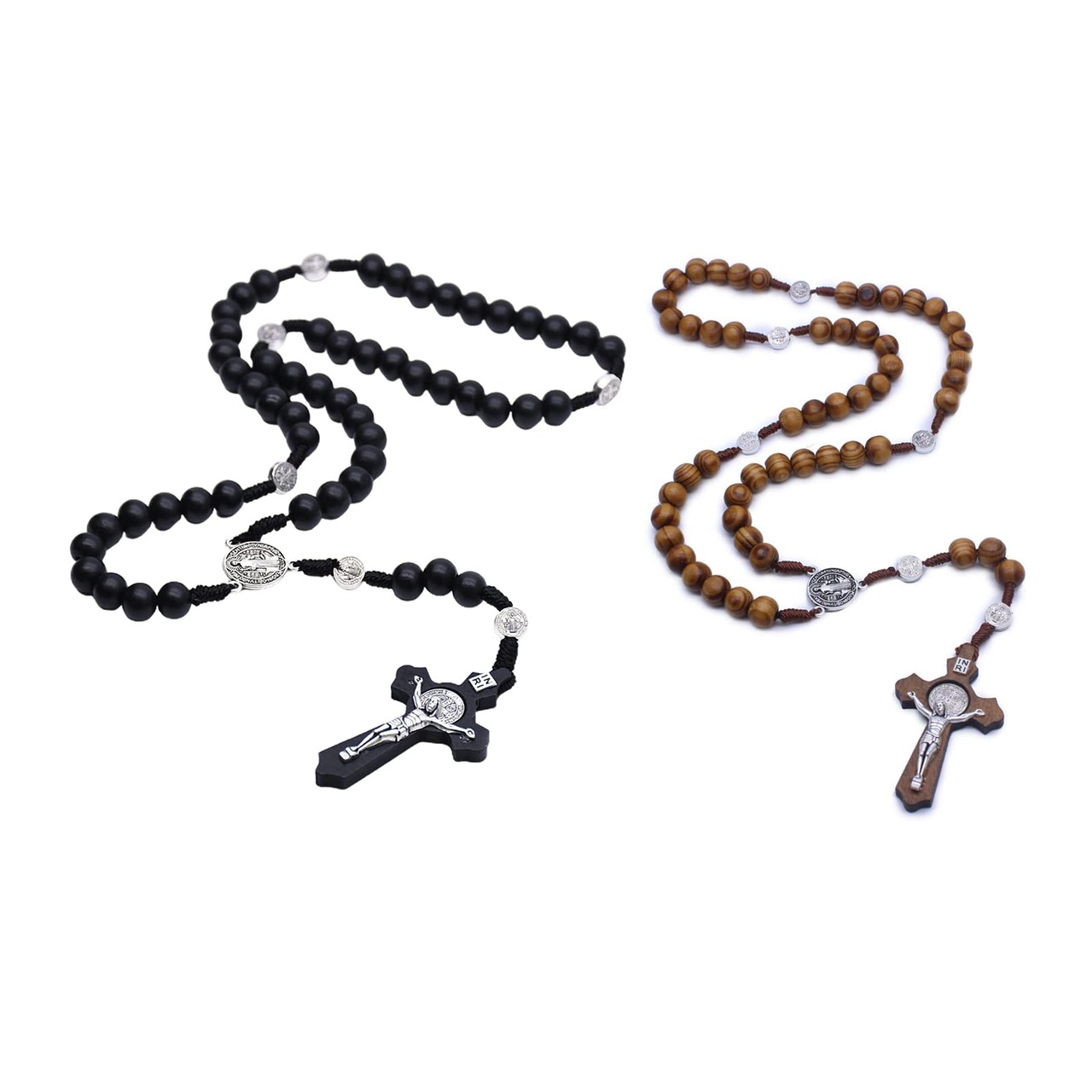 手作りの木材カトリックロザリオのネックレスクリスチャンロザリオビーズクロスペンダントネックレス