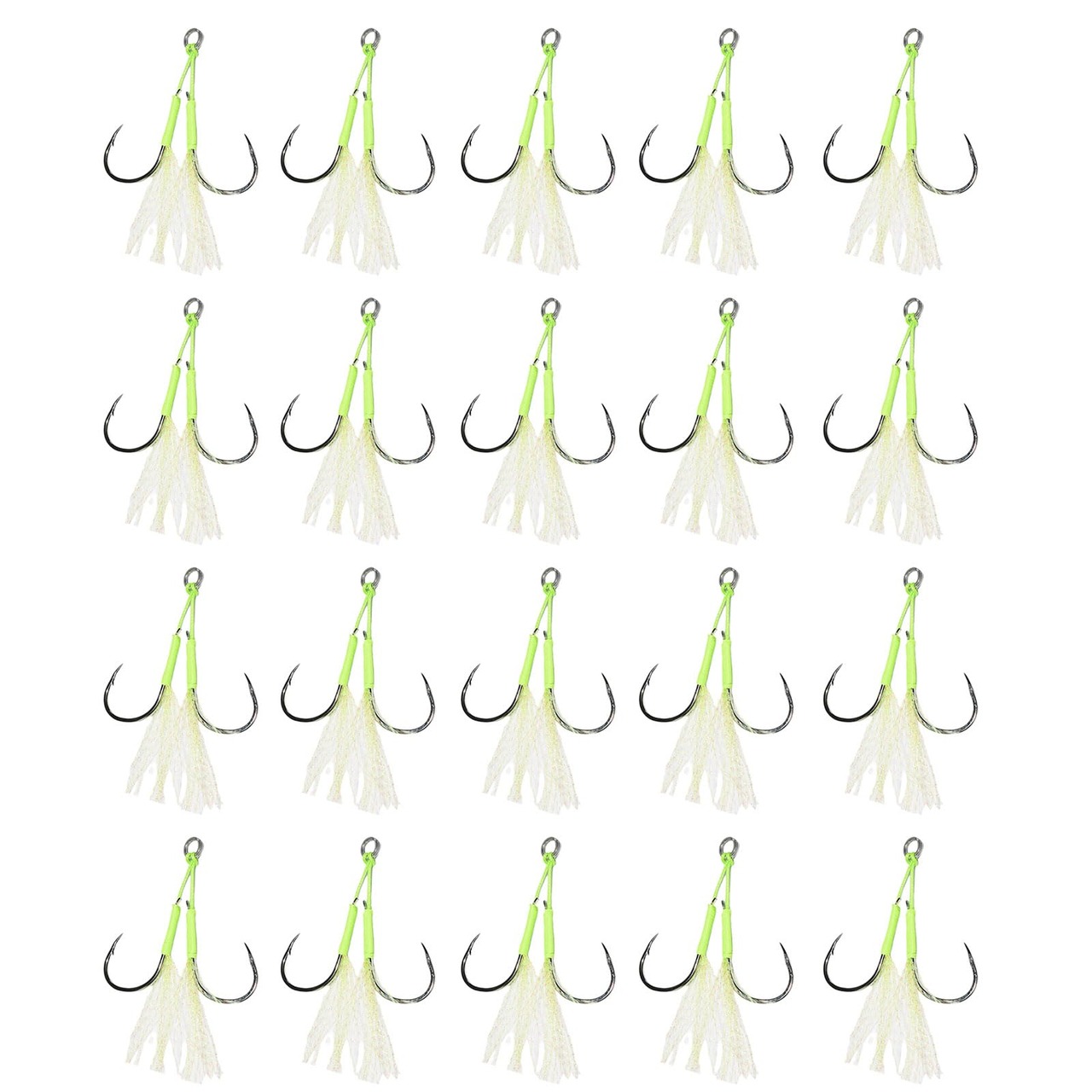 20PCSダブルフィッシングアシストフックキット小サイズジグジギングフックスローすぐに落ちるジグ釣りフック使い