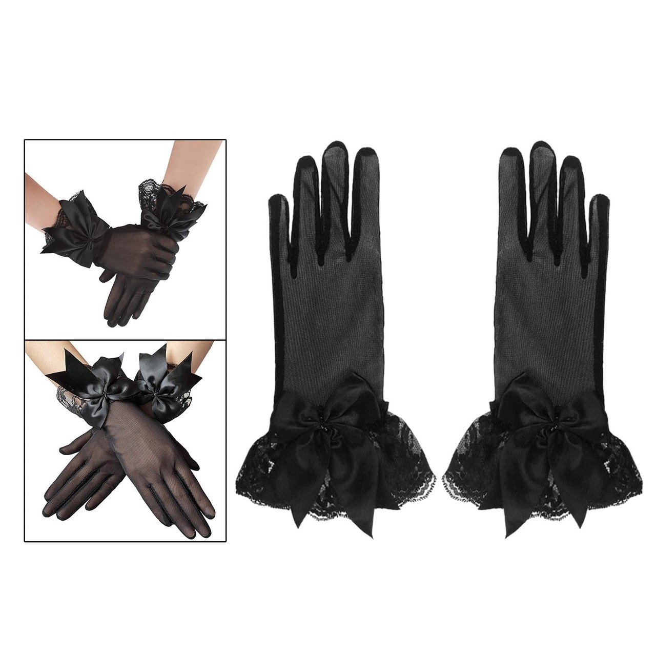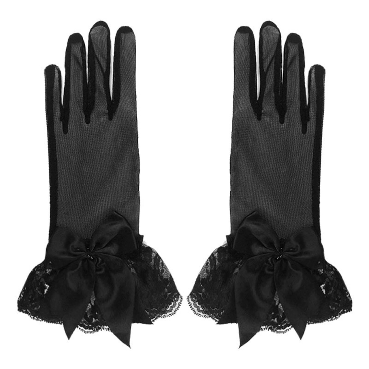 [Toysmith] レディースレースグローブ、リボン装飾ブライダルグローブ、耐久性のあるエレガントなコスチュームグローブ、コスプレパーティー/オペラ/結婚式用, 黒