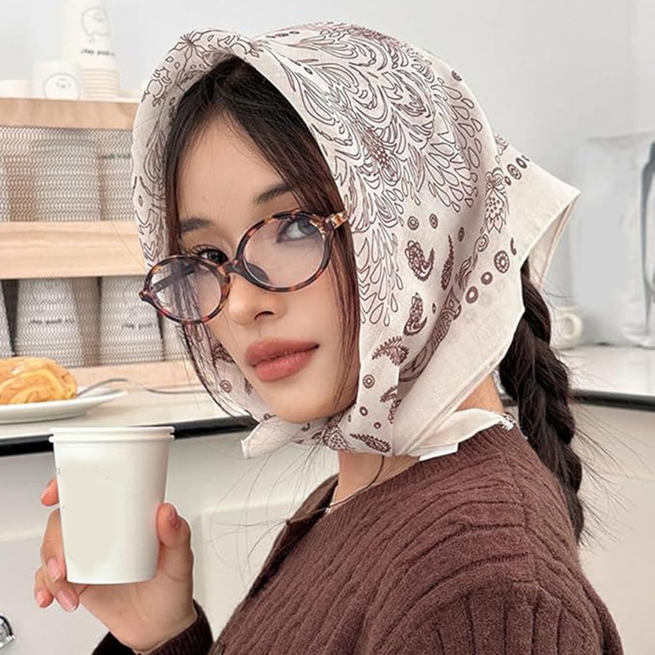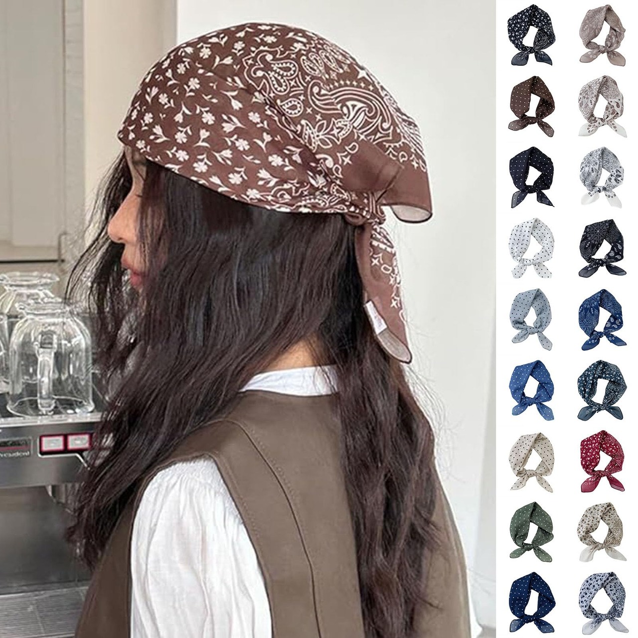 [veolaimy] スカーフ レディース 春 夏 マルチスカーフ スクエア メッシュ 薄手 ネッカチーフ ドット柄 花柄 エレガント バンダナ 小さめ おしゃれ 髪飾り バッグ飾り 58x58cm 通勤 パーティー オフィス 旅行 海辺 プレゼント(A,Free Size)