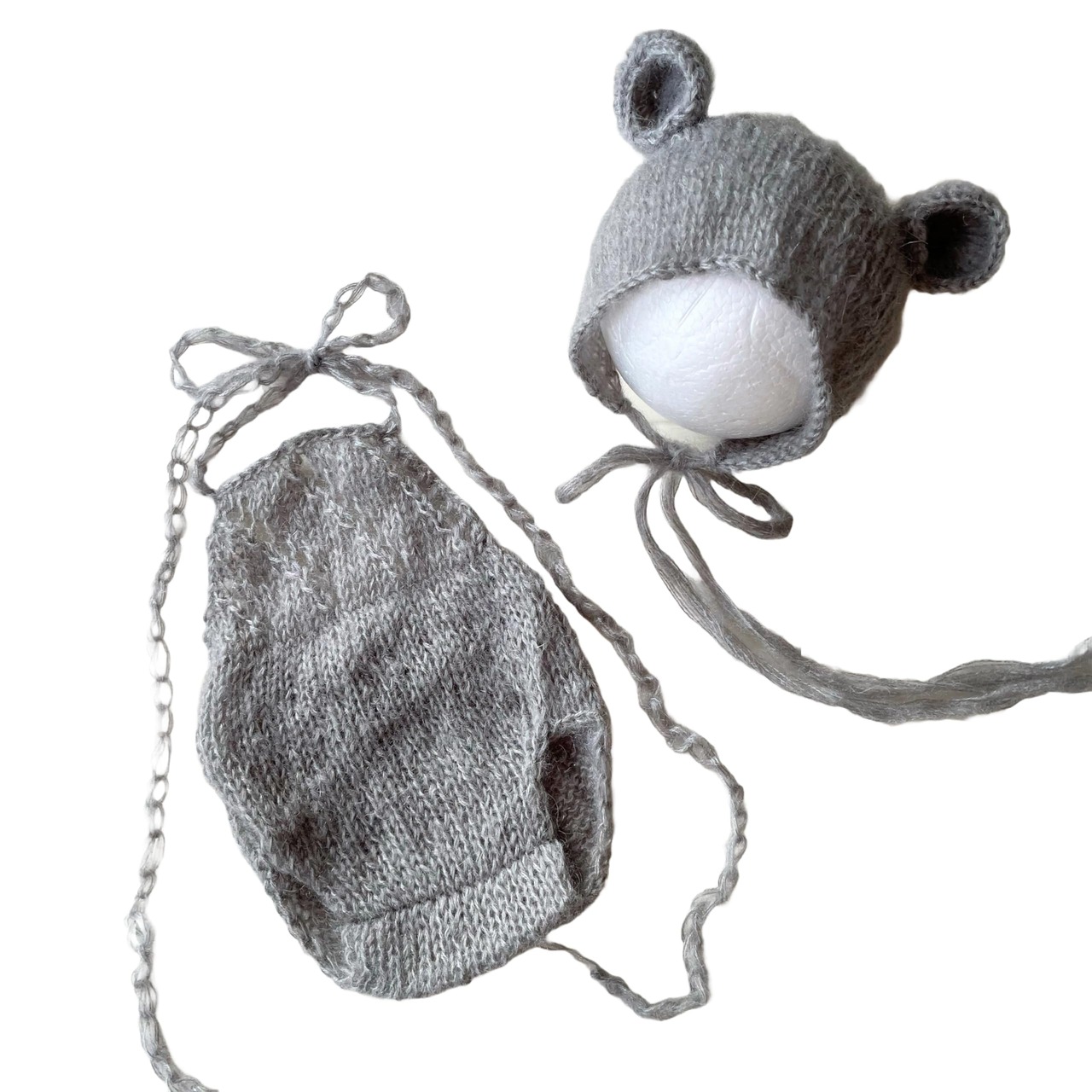 [NANA's shop] ベビー用ニューボーンフォト衣装セット, くま耳ボンネット帽子とロンパース, モヘア素材, 0-6ヶ月用 (グレー)