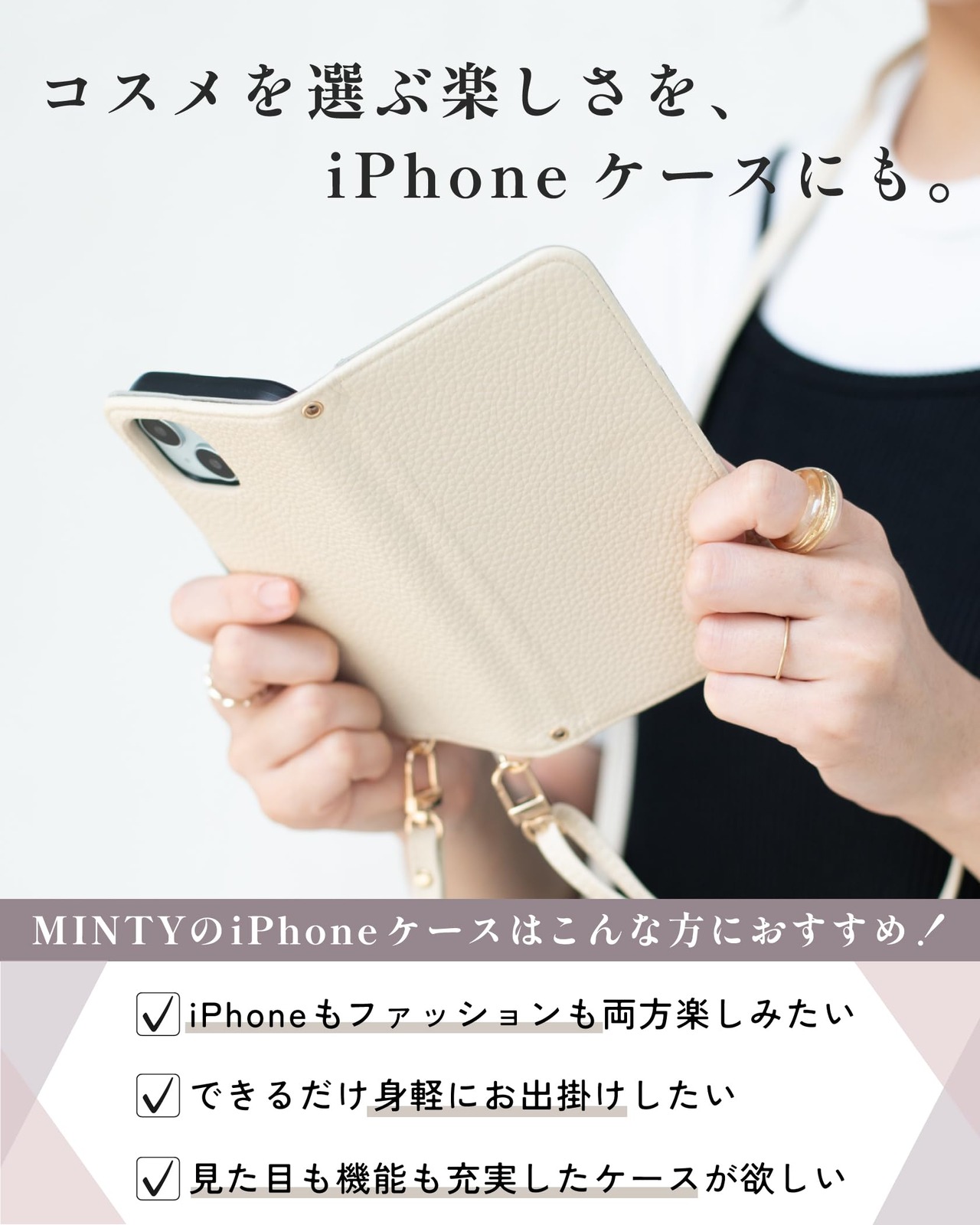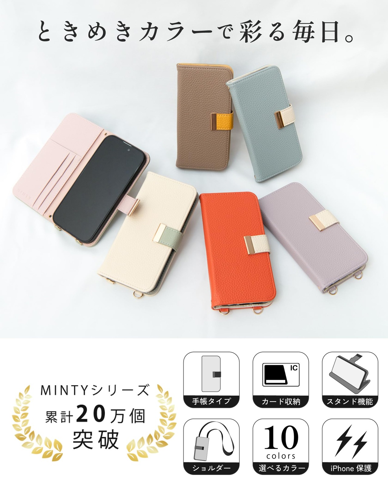 MINTY iPhone16e 用 ケース 手帳型 ショルダー ストラップ バイカラー ライラック×エクリュ