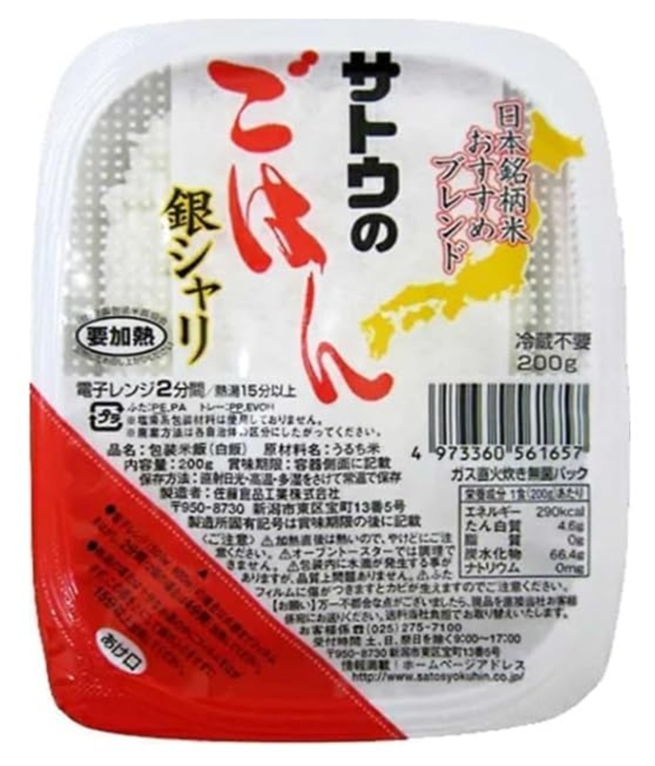 複数の国内産米をサトウ独自のブレンドで仕上げております。 電子レンジで2分間加熱、もしくは熱湯で15分 1年の長期保存が可能な為、災害時の備えにも
