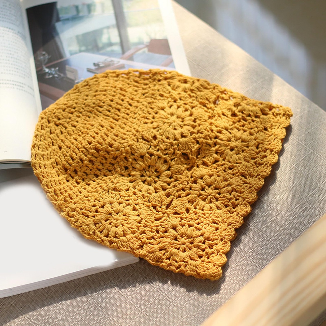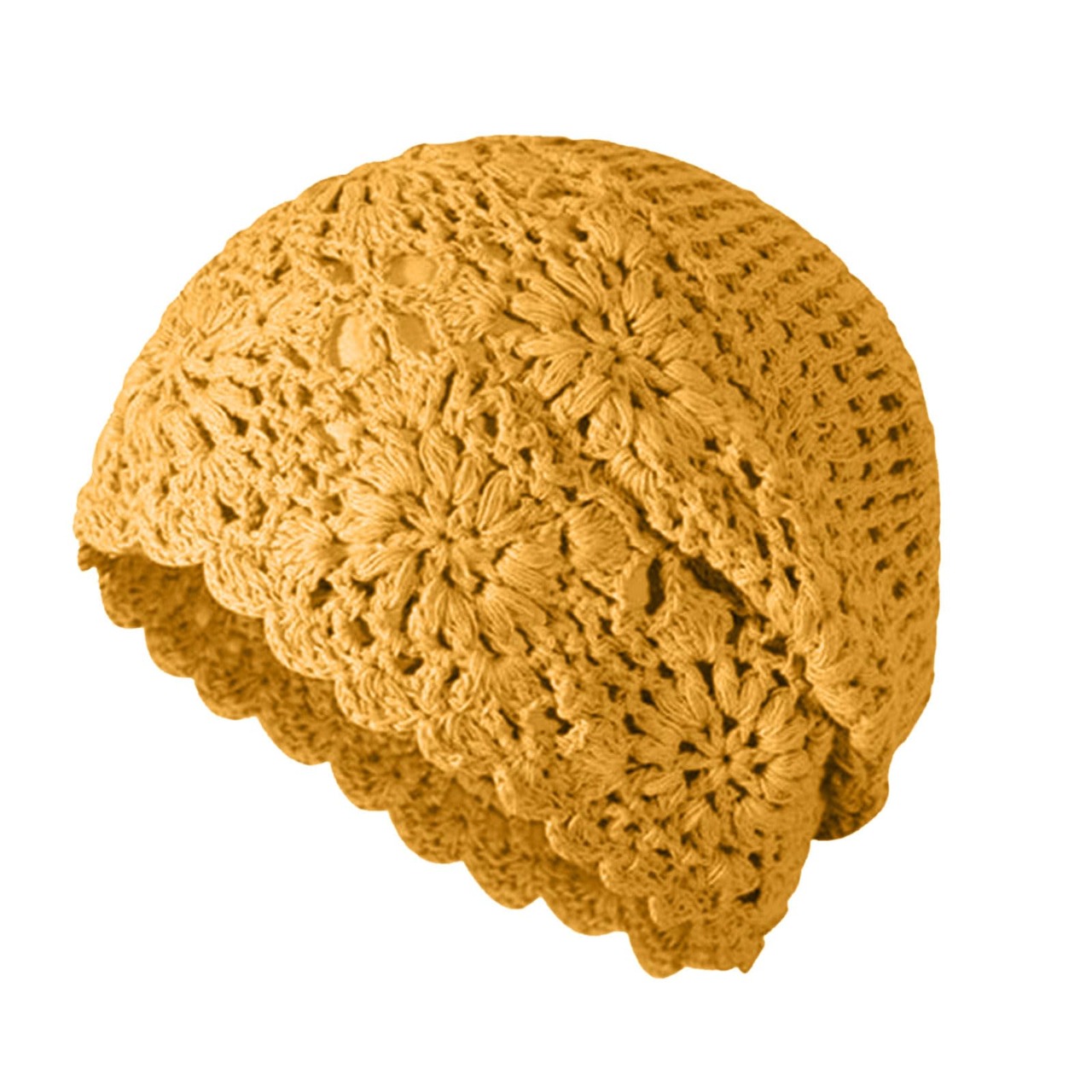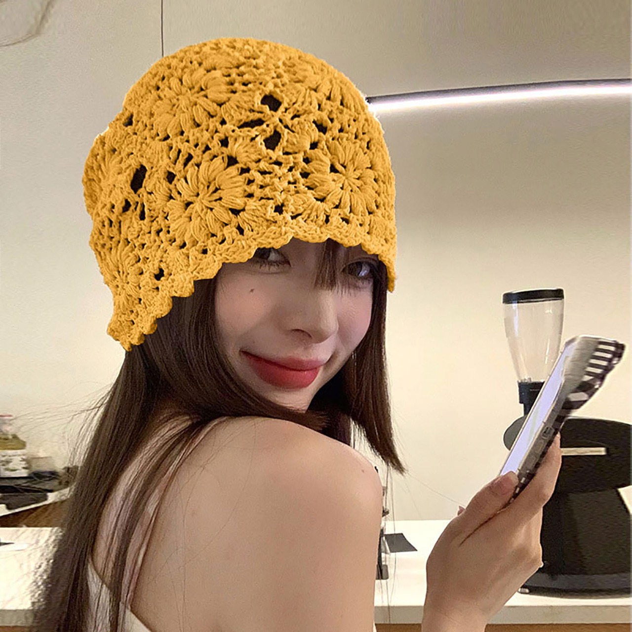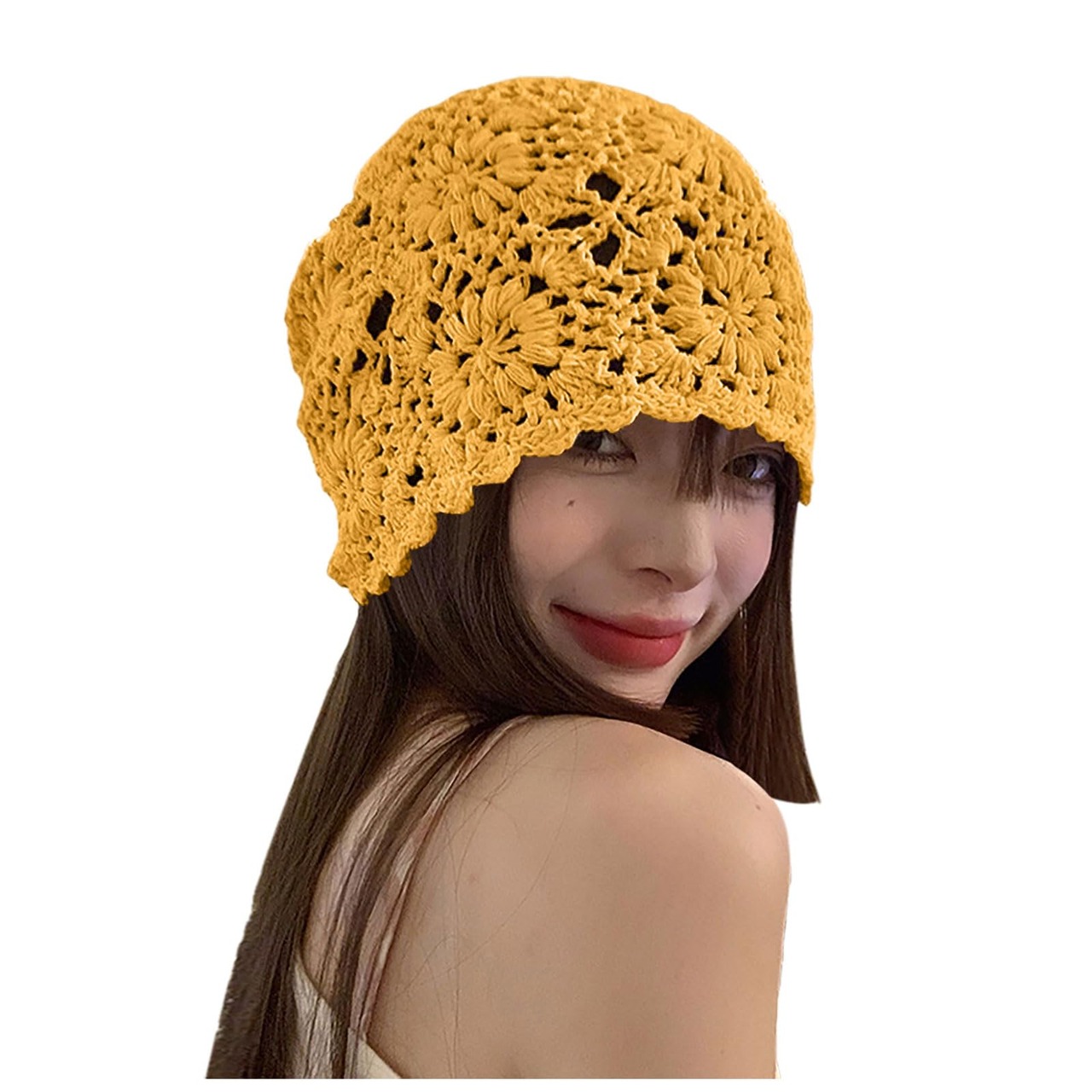 [kaoayi] uvカット 帽子 レディース 日焼け防止 透かし編み キャップ 夏 深め サマーニット帽 無地 おしゃれ 可愛い 花柄 ベレー帽 春夏 通気性 涼しい 吸汗 蒸れない 小顔効果 レース編み 柔らかい 室内 外出用 紫外線対策 (イエロー,Free Size)