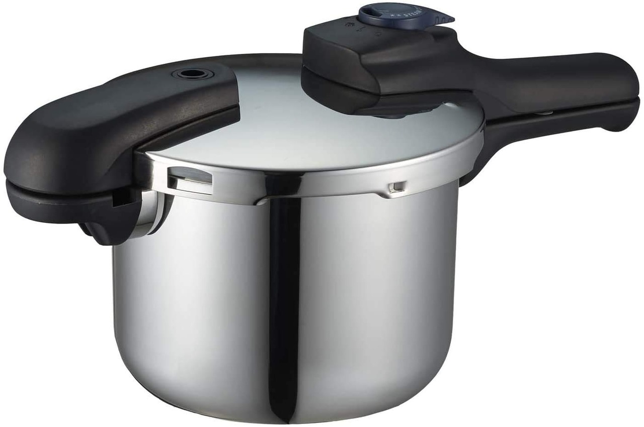 こげつきにくく、保温性に優れた圧力鍋です。 低圧・高圧の2段階に圧力が切り替えられます。 オール熱源対応。