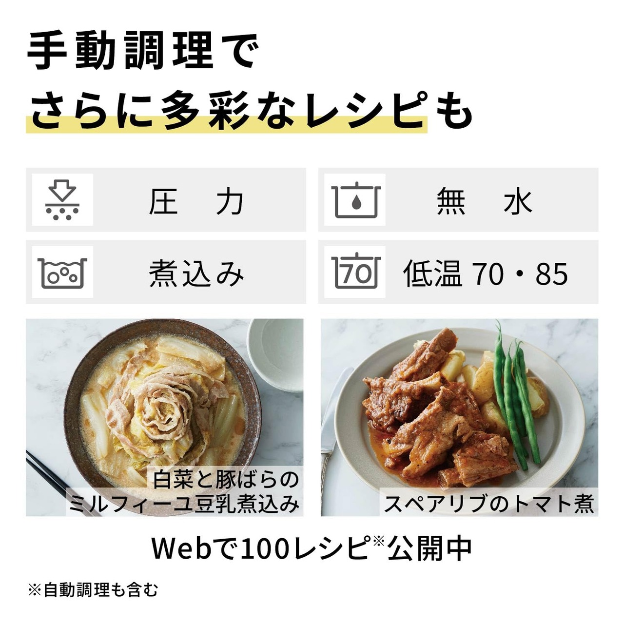 メインからごはんまで多彩な自動調理20メニューで調理容量もたっぷり2.6L