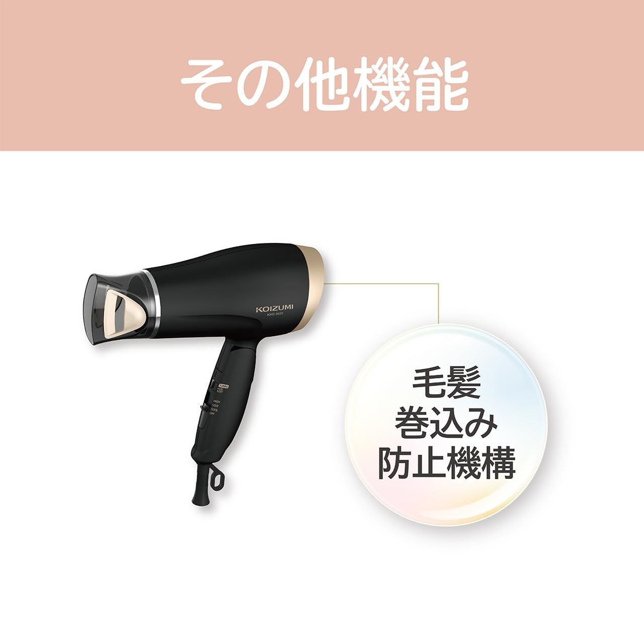 コイズミ ヘアドライヤー マイナスイオン 軽量 コンパクト ブラック KHD-9620/K