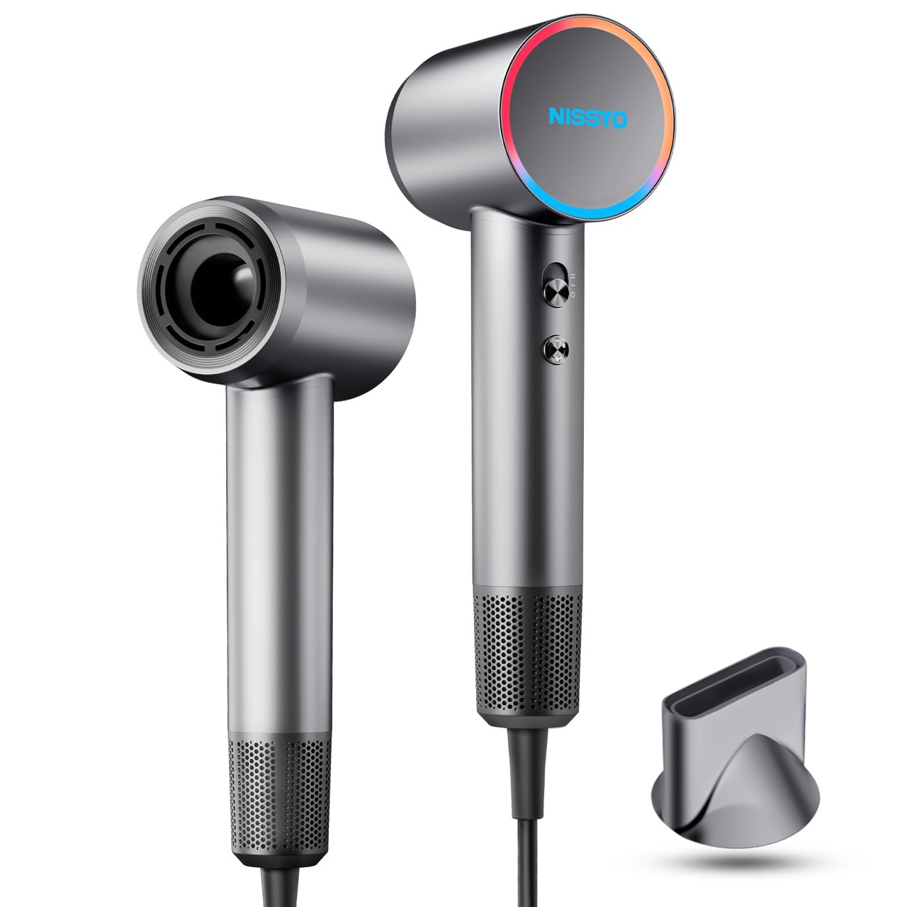 NISSYO【日本正規品・最新型ドライヤー】速乾 大風量 2億マイナスイオン 低温 大風速 温冷リズム 冷風 静音 軽量 ヘアードライヤー 高速ドライヤー ヘアケア 美髪 8モード 静電気 1200W ノズル付き コンパクト ギフト プレゼント グレー