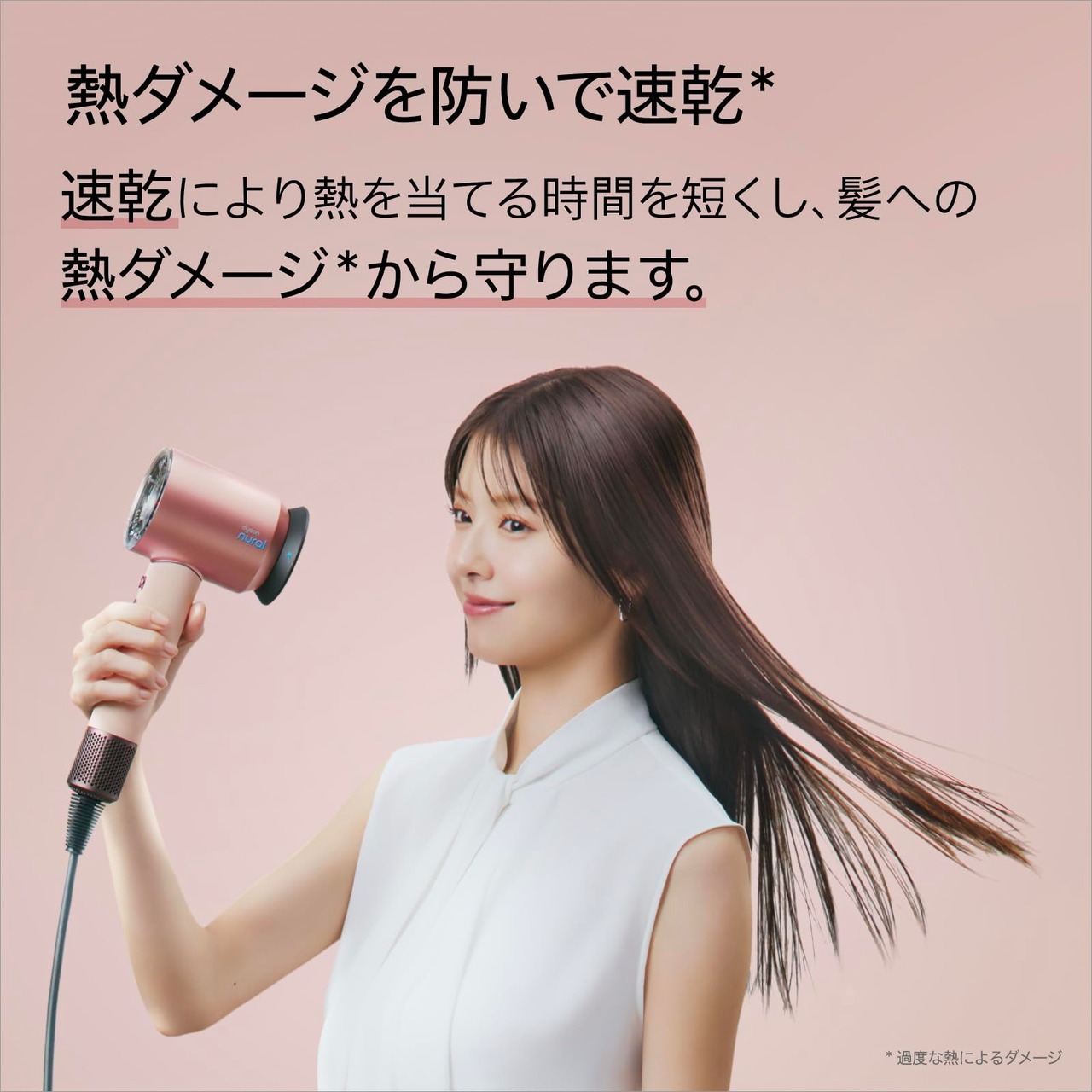 【熱ダメージを防いで速乾²】速乾により、髪に熱を当てる時間が短くなるので、熱による髪へのダメージや²、乾かしすぎから守ります。