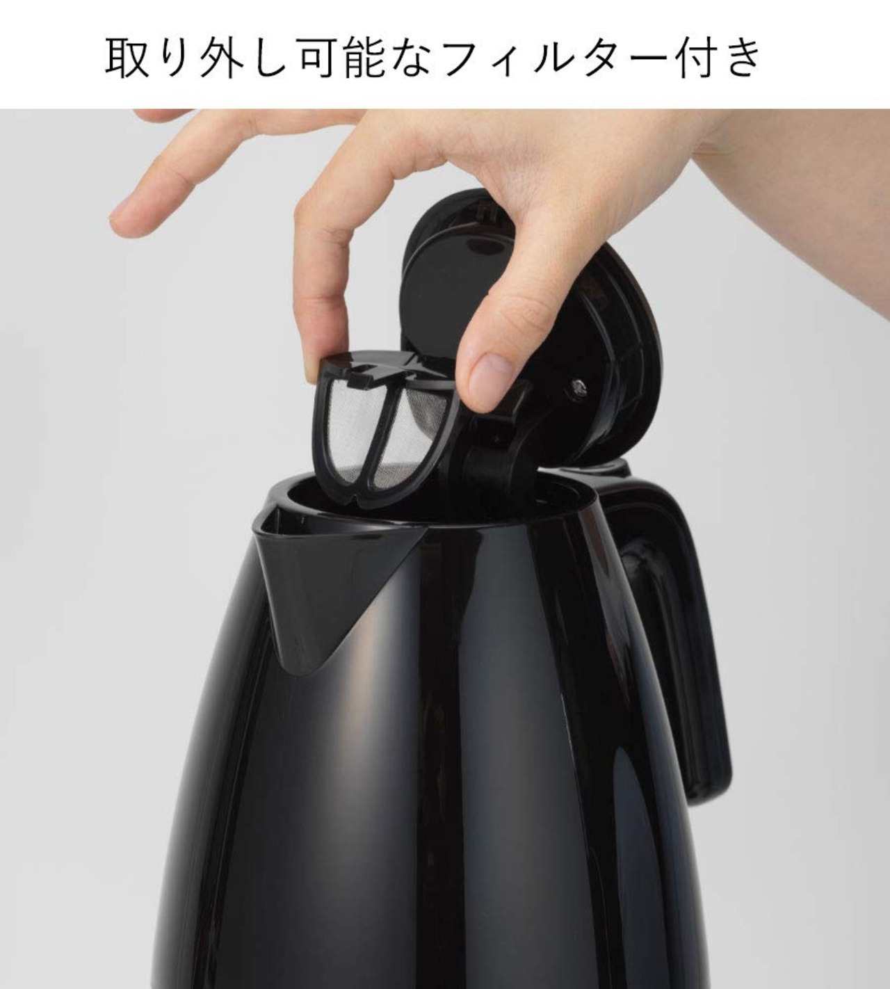 DeLonghi(デロンギ) De'Longhi電気ケトル アクティブ シリーズ KBLA1200J-BK イタリアンデザイン 1.0L ワンプッシュオープン 異物混入防止フィルタ 見やすい水量計 電源コードホルダー [インテンスブラック] ファミリー登録で3年保証