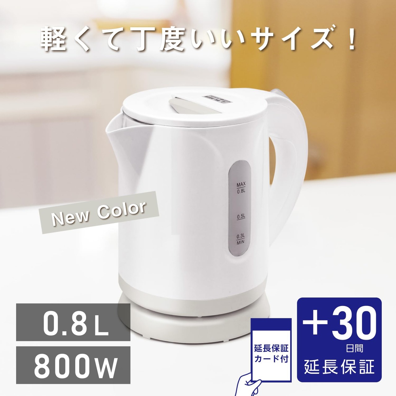 [プラス30日延長保証カード付] イトウ 電気ケトル コンパクトケトル 小型 0.8L 800W 自動電源OFF 空焚き防止 軽量 ホワイト×グレー