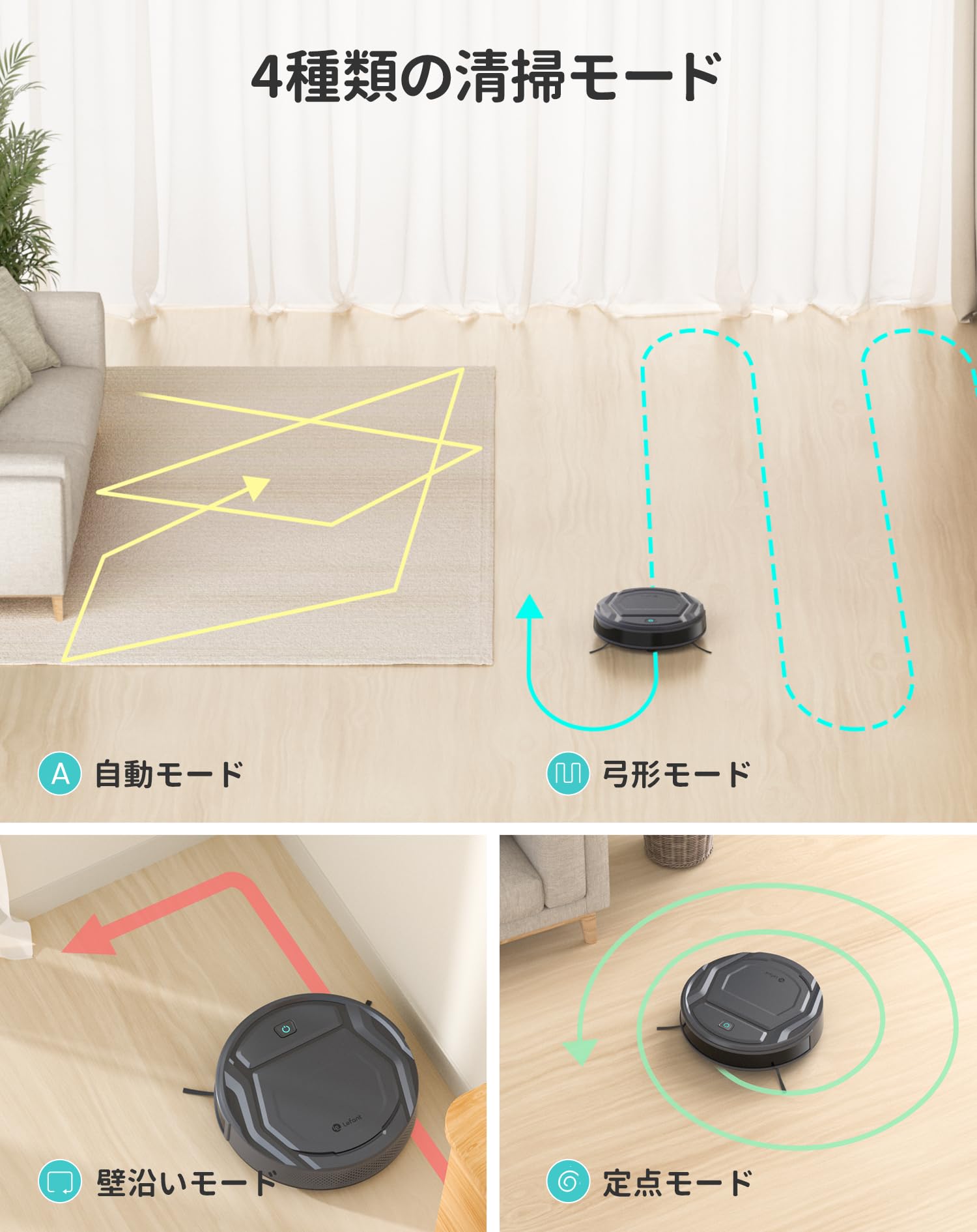アプリ連携は約7秒間で完了します、Lefantアプリを使って、簡単に清掃経路の確認、スケジュールの設定、吸引モードの調節などが行えます。「自動掃除」「スポット掃除」「弓形掃除」「エッジ掃除」の4種類からお好きな清掃モードを選択頂けます。吸引モードについても、「静音モード」「標準モード」「強力モード」からお部屋の汚れ具合などに応じて選択頂けます。